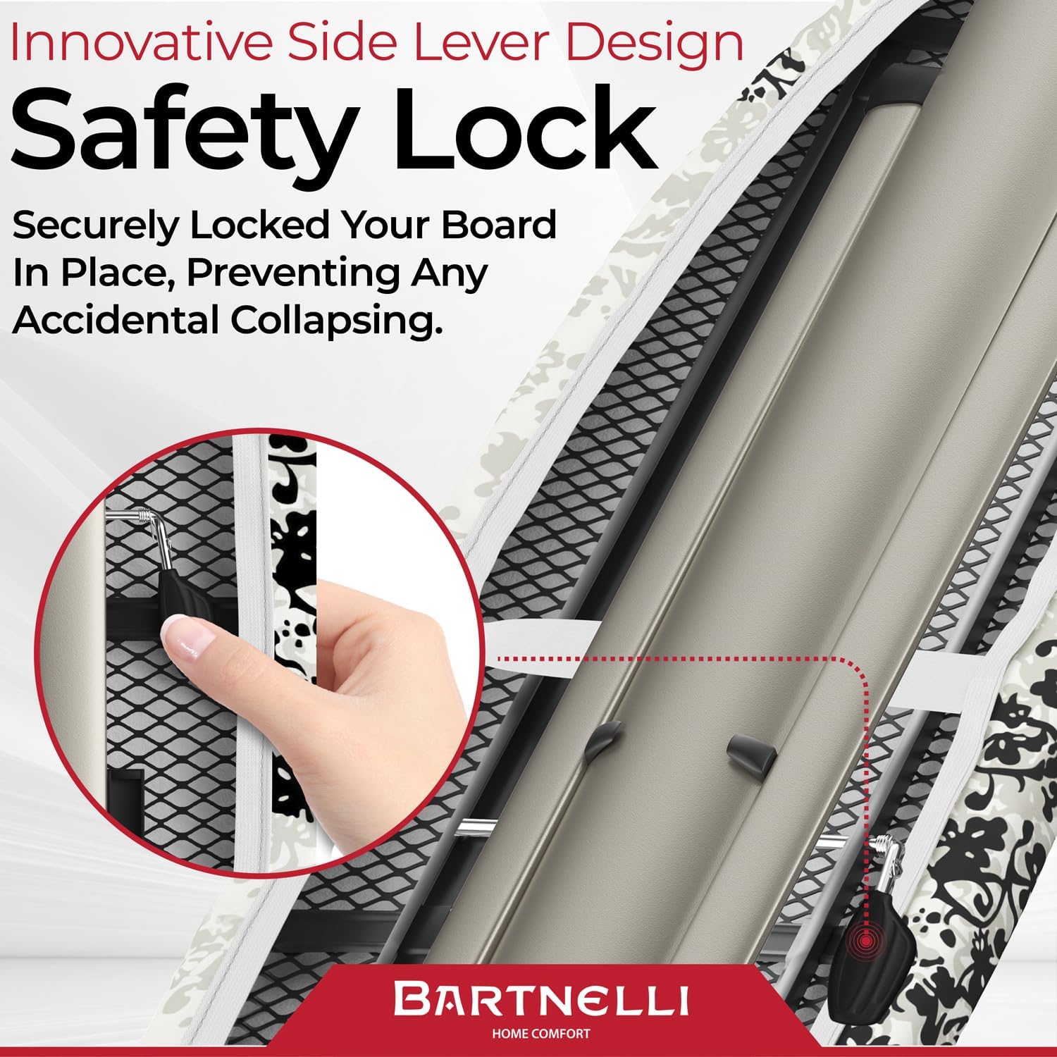 Bartnelli Pro Luxury Ironing Board - Extra Wide 62x19” Steam Iron Rest, Adjustable Height, T-Leg Foldable, European Made