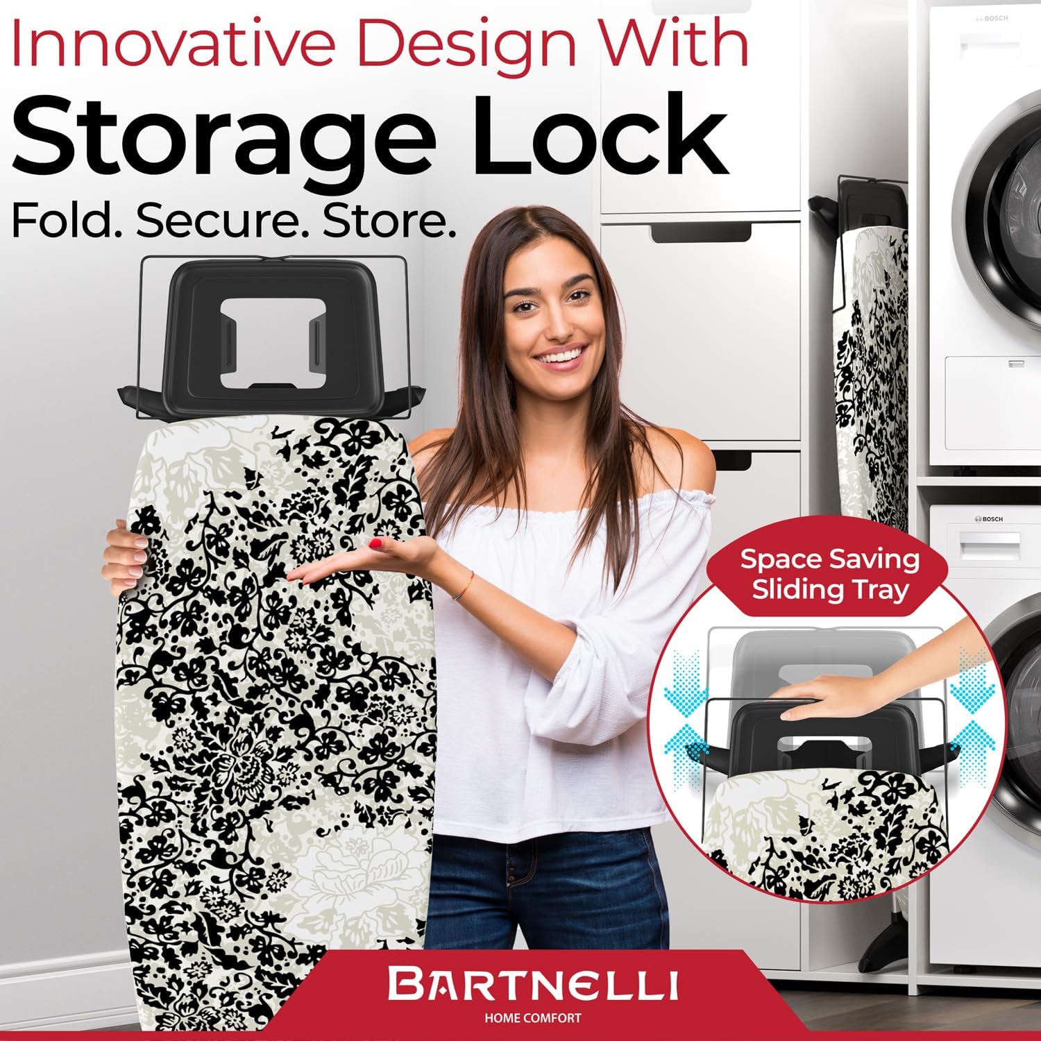 - CUSTOMIZE TO YOUR HEART'S CONTENT – HEIGHT & STORAGE, SOLVED! What if your ironing board could fit you perfectly and vanish out of sight when not needed? Say hello to adjustable heights and easy folding with a secure lock for storage. Tailor it to your comfort, then tuck it away without a second thought. Finally, a board that adapts to your life, not the other way around. Comfort and convenience? Check and check!