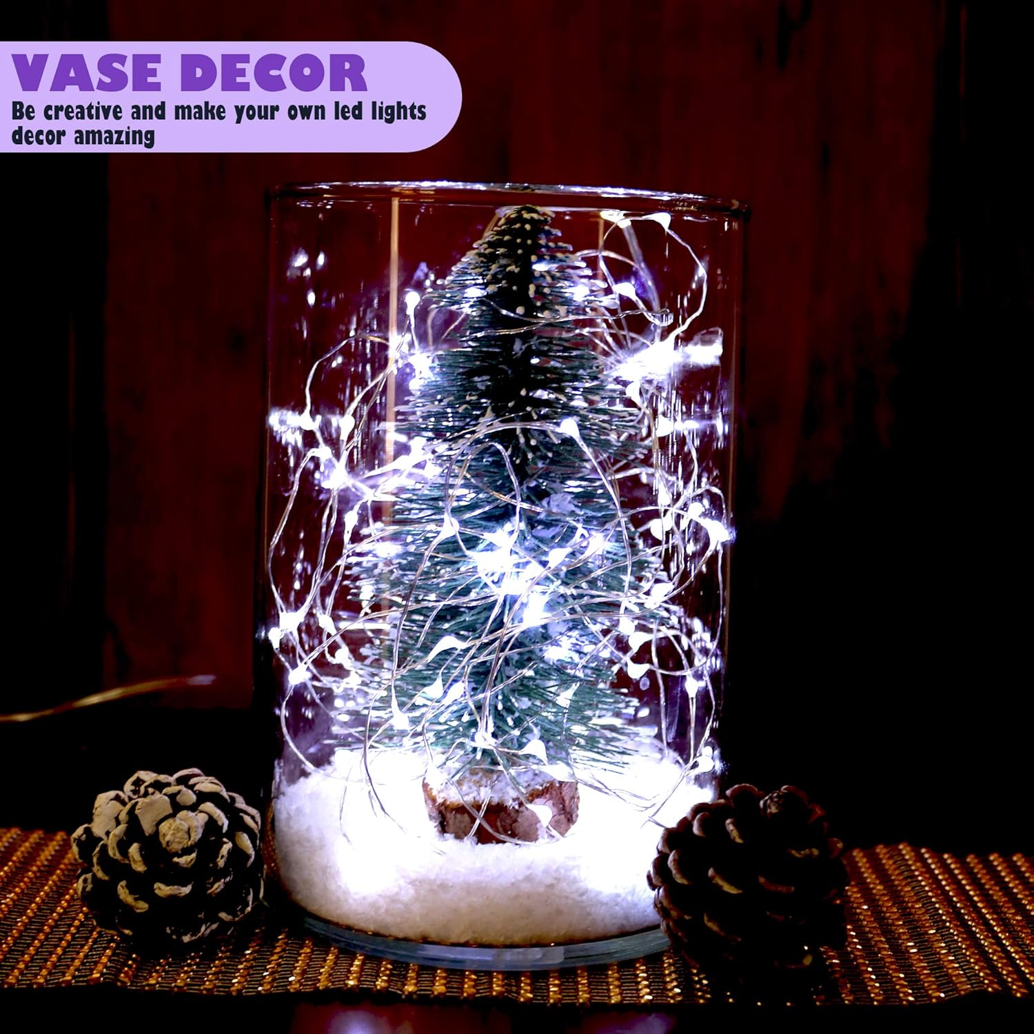 - Very good design tools:6pcs lights per packing,battery compartment extension cord is 0.6ft,each light is with 6.5 feet flexible thin copper wire with 20pcs bright micro leds. White Light(6000-8000K),They glint in the dark, For your patio, deck, front porch, child’s bedroom,Festival, Floral Decoration,Wedding,and Party. And the copper wire disappeared into the night, Leaving only light.