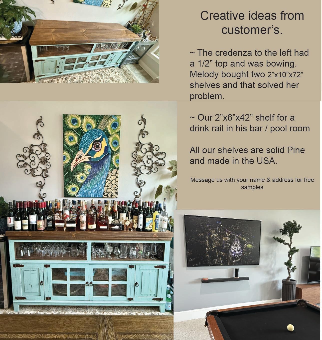 - Proudly Made in the USA: Crafted with care in the USA using sustainable Pine from Wisconsin and US steel, our shelves embody quality craftsmanship and support local industries. Recommended Weight Capacity 18” – 30” shelf | 30 pounds 36” - 54” shelf | 45 pounds 60” – 72” shelf | 50 pounds