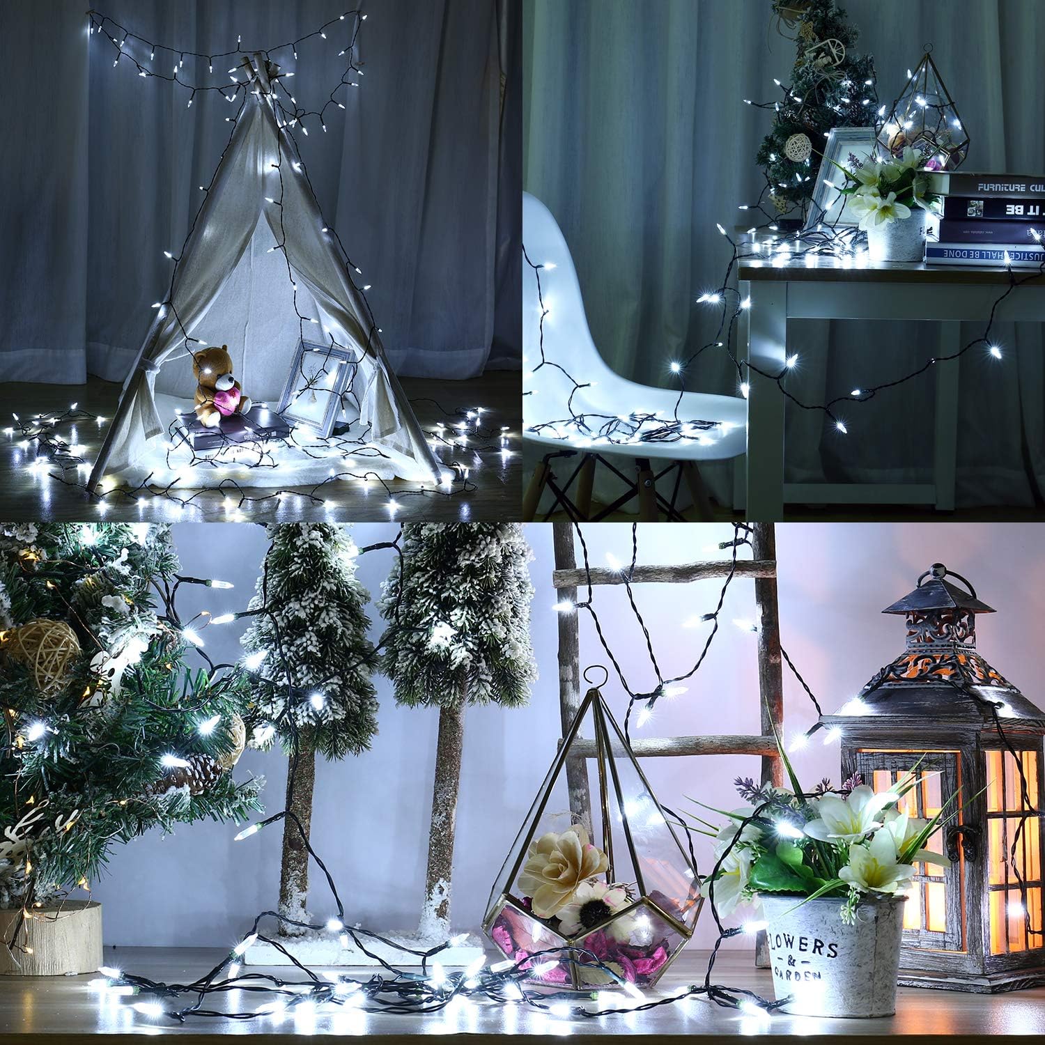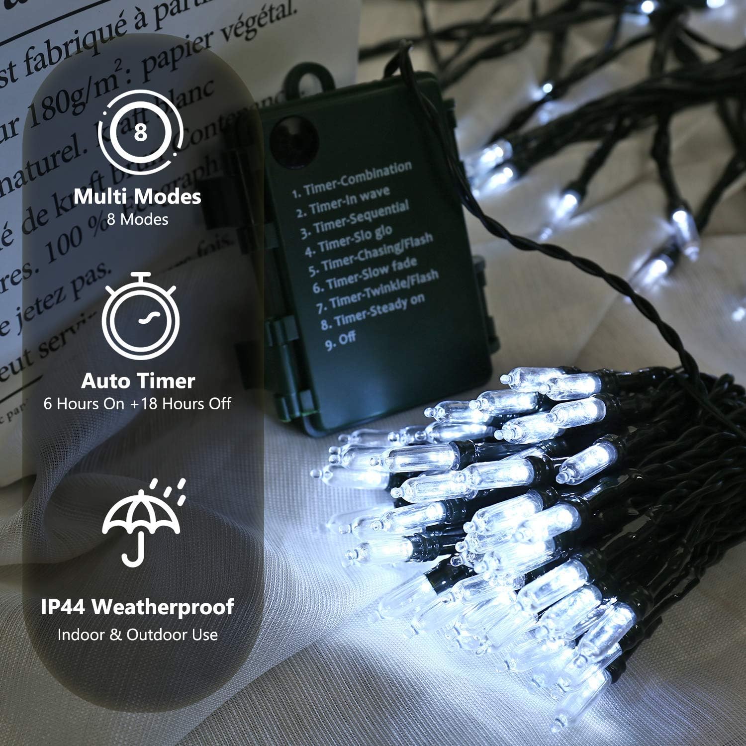- 2x50 LED Battery Christmas Lights: Battery green wire Christmas lights with 50 led white light bulbs, emits a romantic glow. Enhancing your indoor & outdoor decorations in every season. Powered by 3AA batteries, batteries are not included.