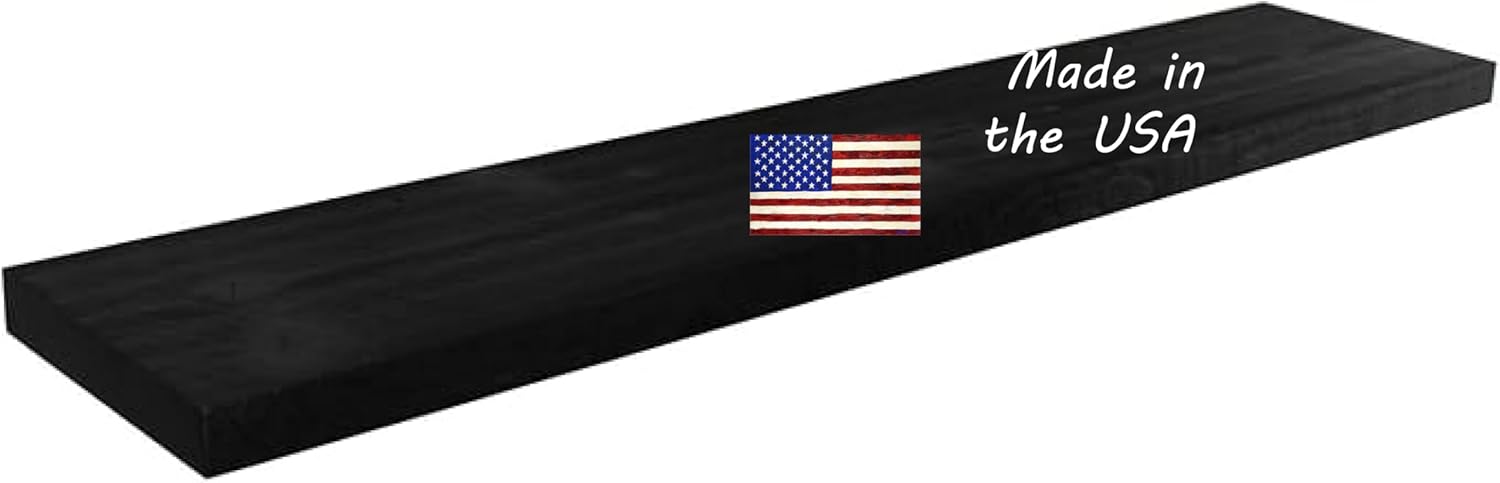 joelsantiques 60 Inch Wooden Floating Shelves for Wall - 60x12x2 in - Made of Natural Wood - Long Heavy Duty Rustic Wall Shelves for Bedroom - Perfect for Living Room, Kitchen - Black