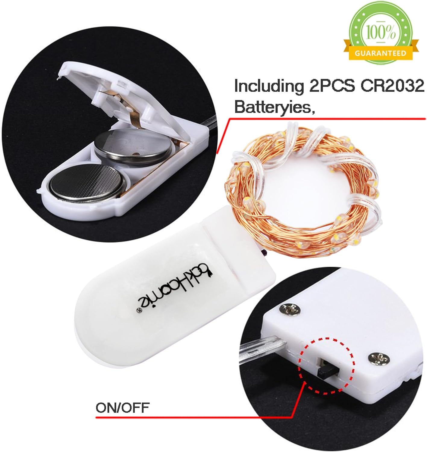 - Each fairy light is included CR2032 batteries, The battery box is with ON/OFF switch,simply switch on the lights and enjoy these amazing moon lights.The battery of these short fairy lights last for 48hours around continuous life, The batteries need to be replaced when the lights get dim. .