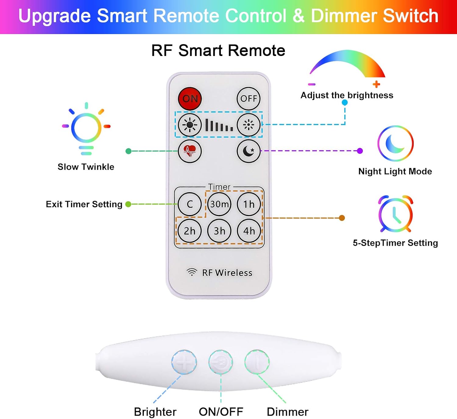 - Convenient Remote Control: Comes with a smart remote that allows you to set a slow twinkle glow, as well as to adjust the brightness you want, and set the timer from 5 steps.