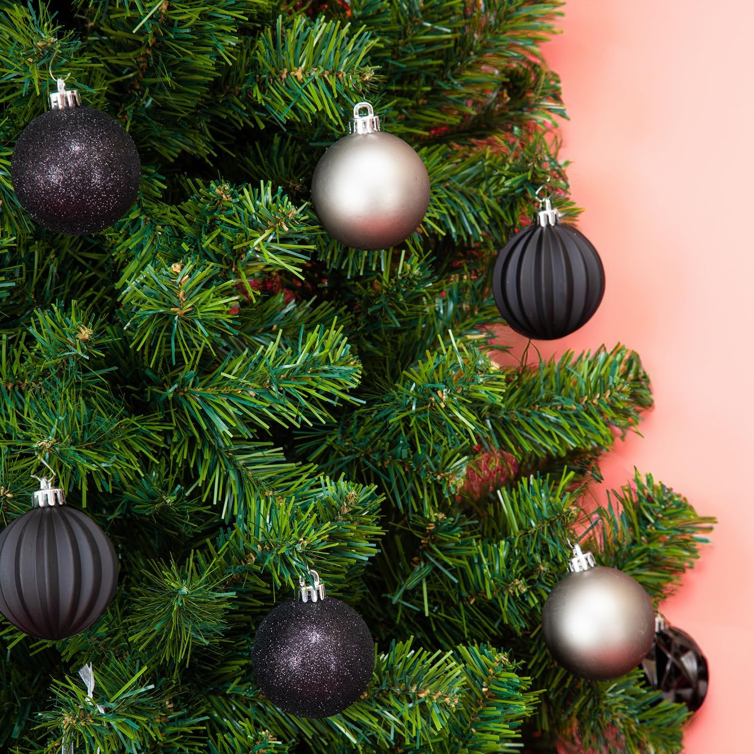 Every Day is Christmas Ornaments, Shatterproof Christmas Tree Ornament Set, Christmas Balls Decoration 50 Count (2.24"/57mm, Black Grey)