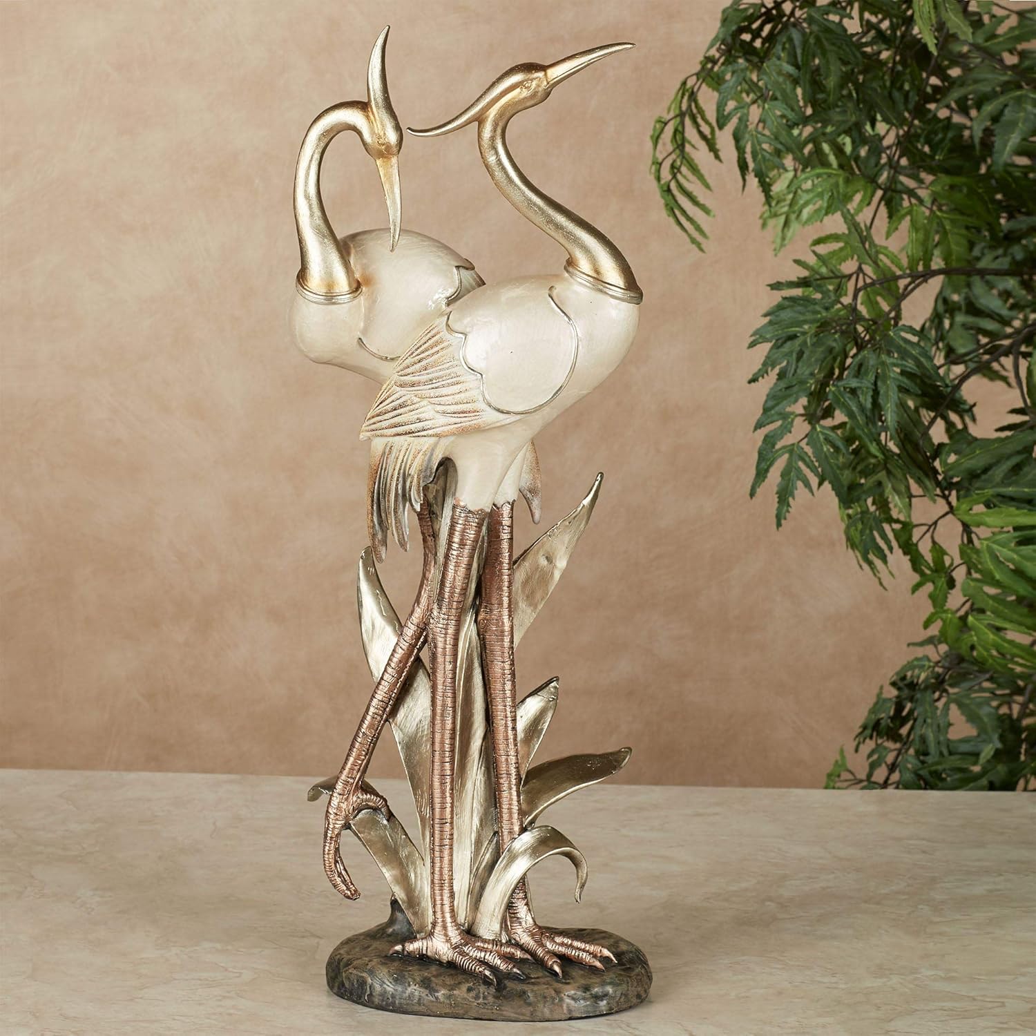 - 🔶 REALISTIC CRAFTSMANSHIP 🔶 - Created and curated exclusively for you, the tall and majestic beautiful birds statue strike a pretty pose! Made of resin, these cranes have an ivory finish that replicates the look of capiz shell, light copper legs, a shimmery light gold head, and feathers that are tipped with gold glitter.