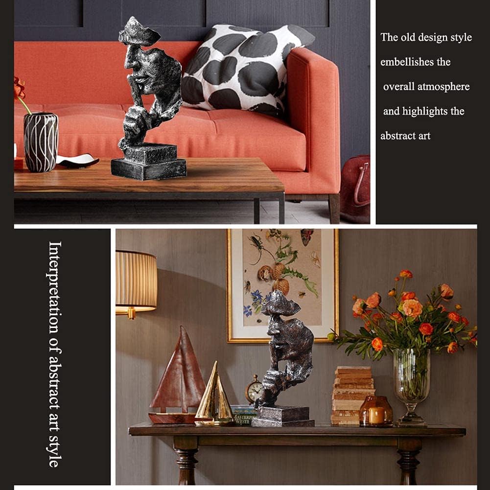 Silence is a Golden Statue Modern Mens Creative Office Home Room Decorations Sculpture Friends Bookshelf Decorative 4.7 x 4.3 x 13.18in(Silver) Modern Home Décor