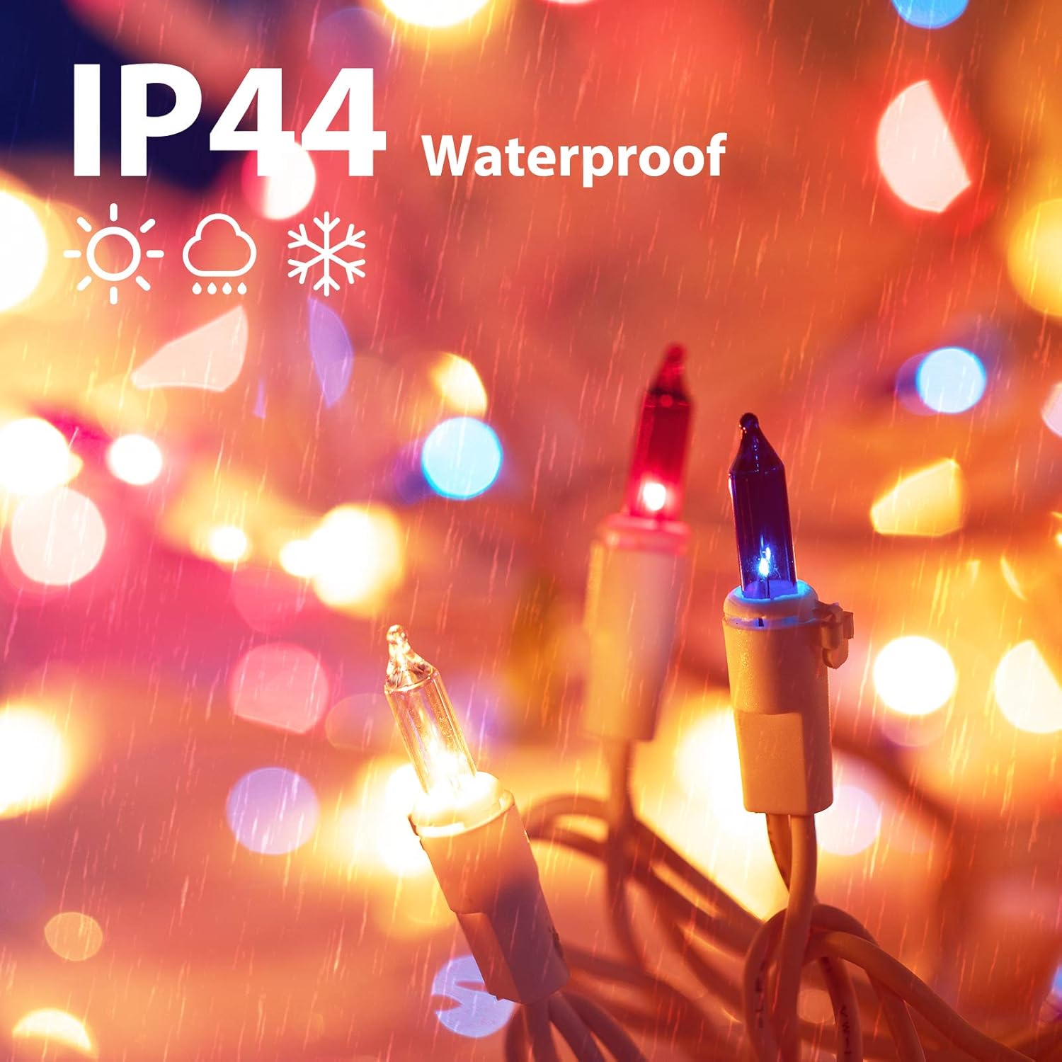 - Premium and Safe: The christmas lights are made of great material and superb craftsmanship, built in fuses, universal UL listed certification, IP44 waterproof, can be used safely. These 360Âş sparkling waterproof string lights can not only provide good lighting effects but also bring a more romantic festive atmosphere, great for indoor and outdoor lighting decoration