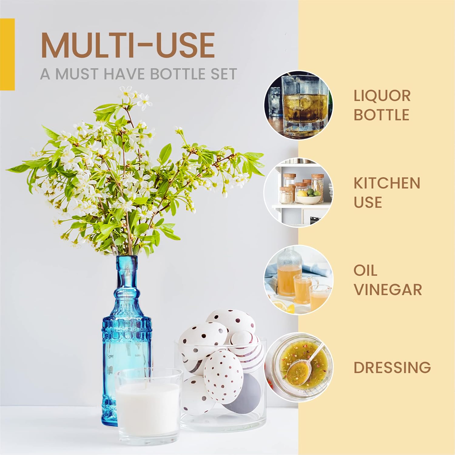 Assorted Blue Glass Bottles with Corks, 6 Pack, 2.5in X 9in, 16oz