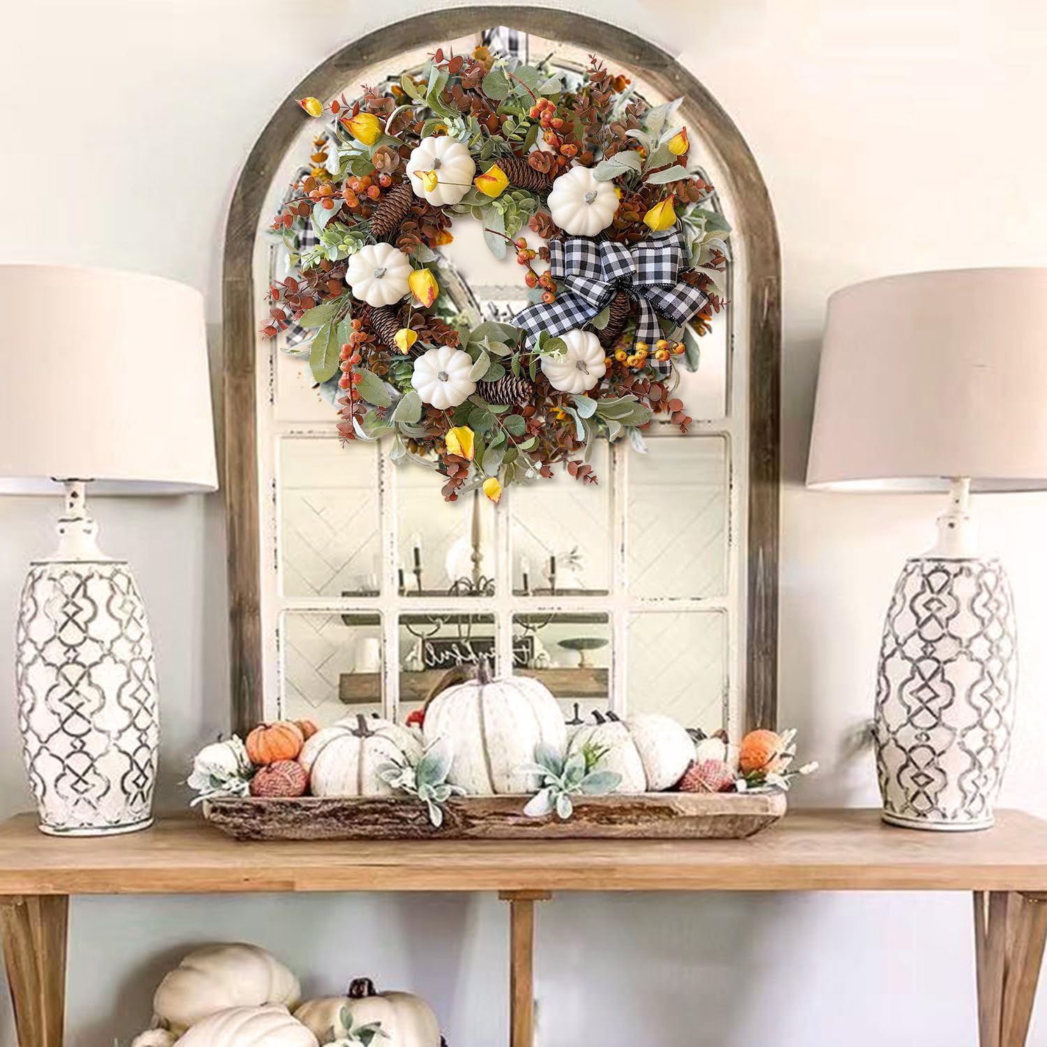 - ④ 【Easy to Decorate】-This fall wreaths with the farmhouse tone. Suitable to use for front door, window, fireplace, wall, office, retail stores decoration, parties, indoor activities and all kinds of festive