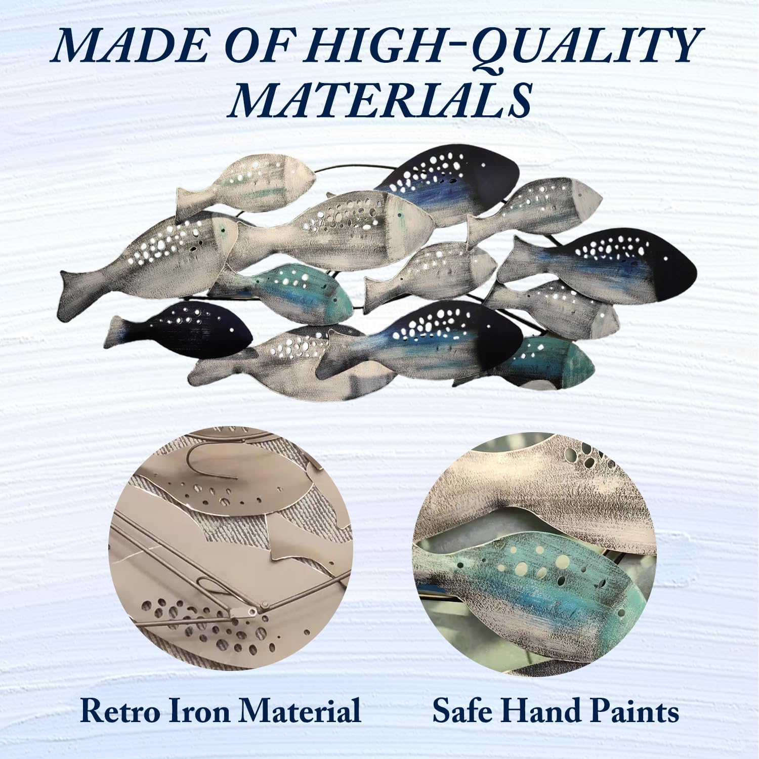 - Hand Painted Metal Fish Wall Décor : Large Size 50" x 20"(126 x 53cm) , handmade metal iron crafts, Old-fashioned fish decoration with a Mediterranean-style marine theme, Smart and elegant, lifelike, retro distressed finish.