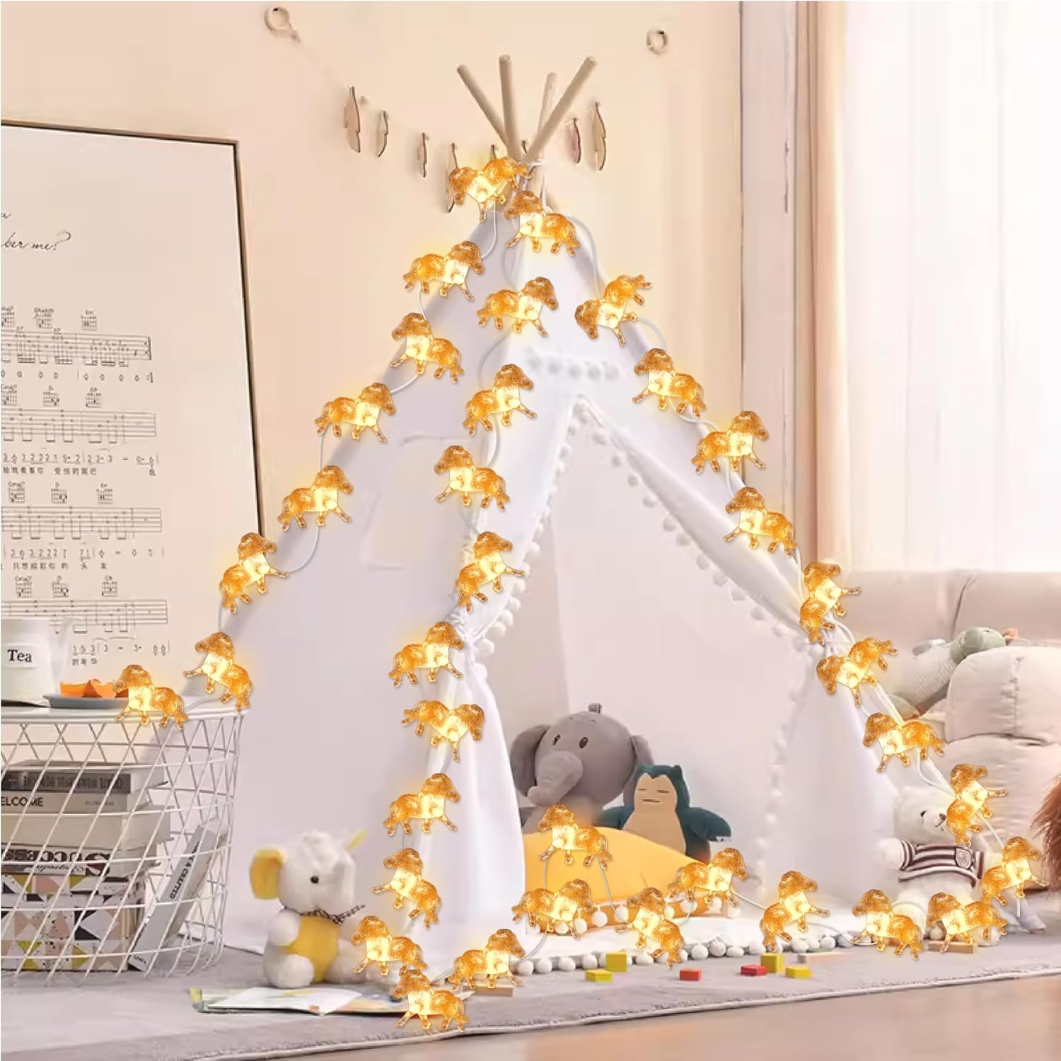 - Unique Decorative String Lights: Three Diamond Shaped Horse Lights, Not Flat on One Side