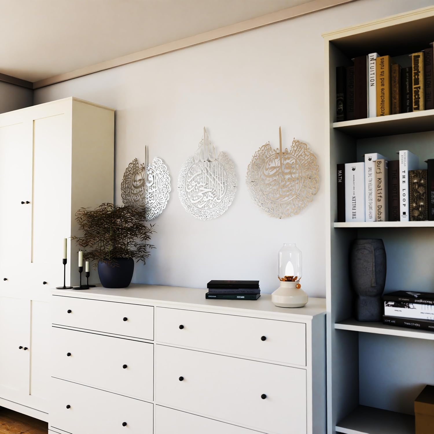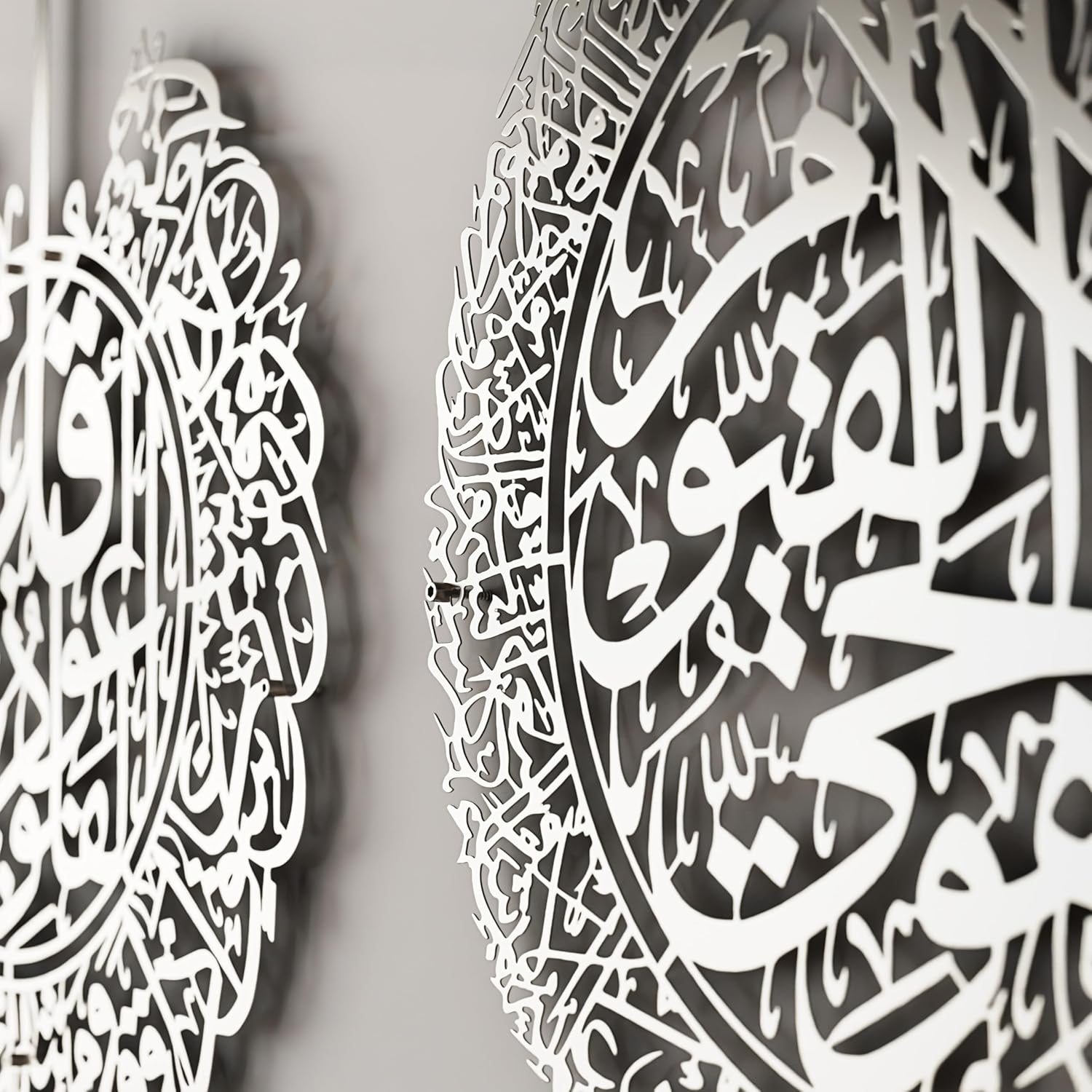 IWA CONCEPT Metal Set of Ayatul Kursi, Surah Al Falaq and Surah An Nas | Islamic Ramadan Wall Decorations | Modern Muslim Housewarming Gift | Calligraphy | Quran Wall Art | (Matte Silver, XLarge)