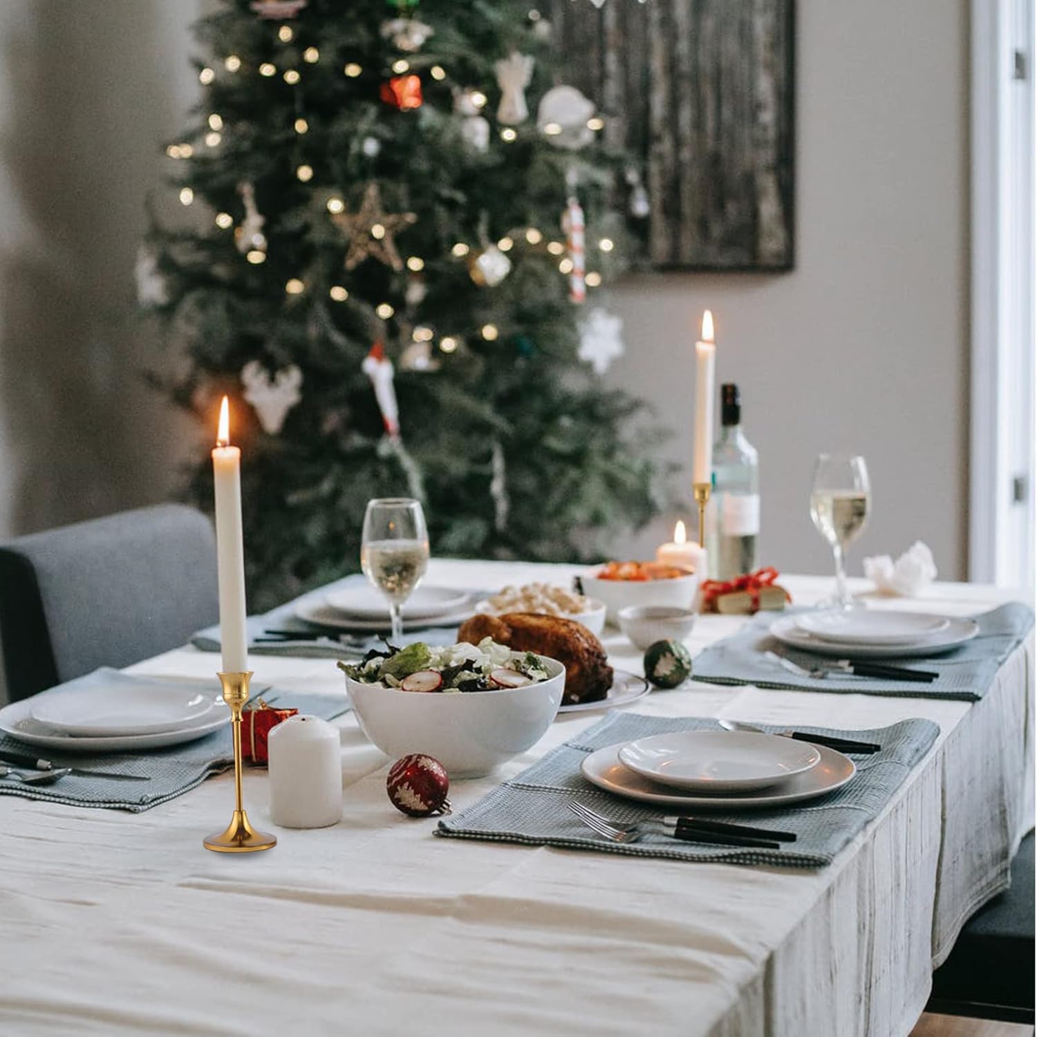 - đăSturdy and Stable Brass candlestick holdersăMade of solid, durable, high-quality aluminum alloy materialïŒthis candlestick holder is durable and sturdy enough to hold tall taper candles. Each Gold candlestick holder set can fit 3/4 inch and 7/8 inch small pillar candles as well as LED cone candles to match your dining table decor.It provides a stable base for your candles,ensures stability and longevity for your candles.