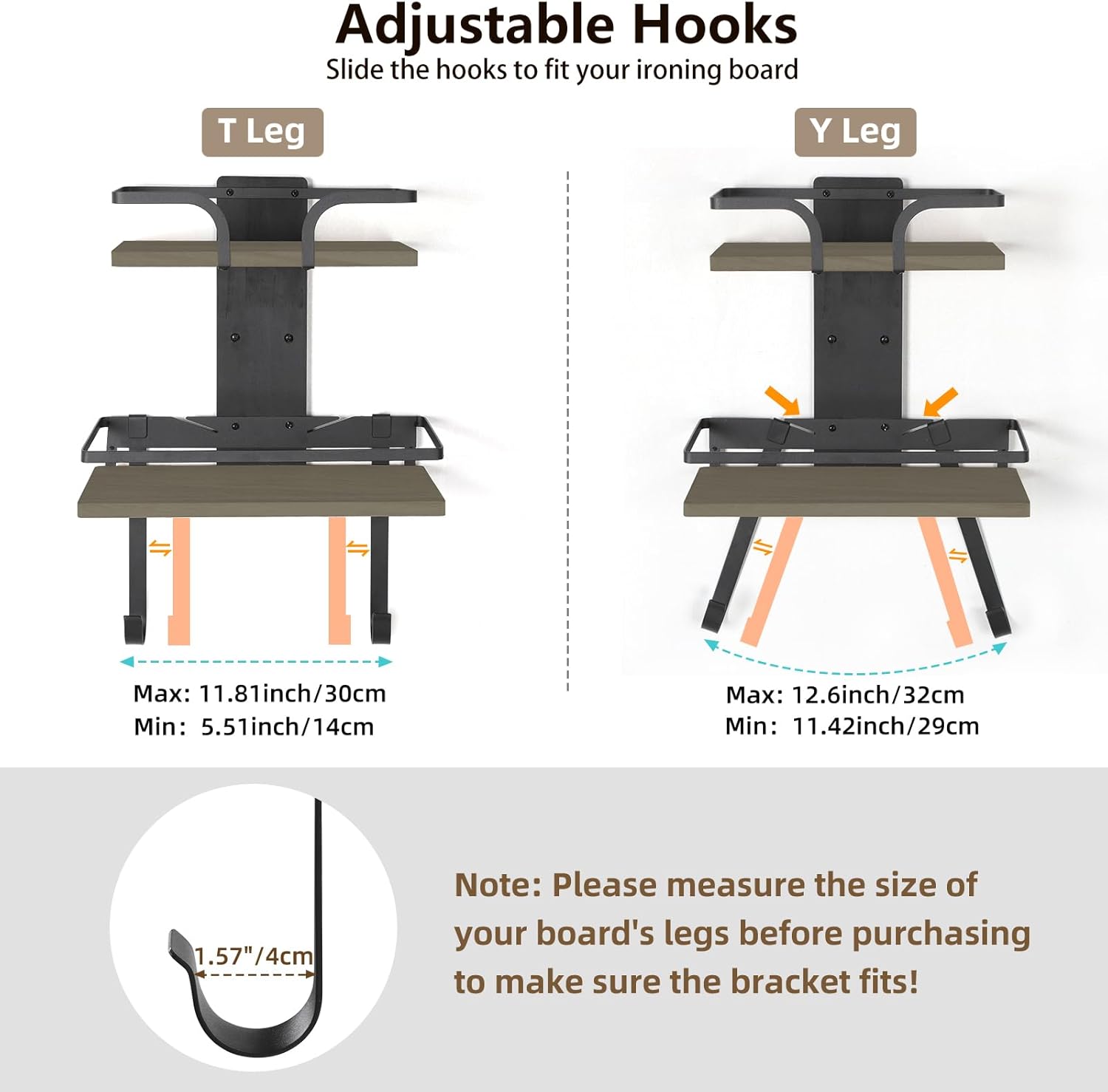 - 【2-Layer Larger Storage】Upgraded 2-layer solid wood design, this ironing board hanger for wall offers twice as much storage space as any other products. It is convenient for you to keep your irons, ironing board and ironing accessories in one location.