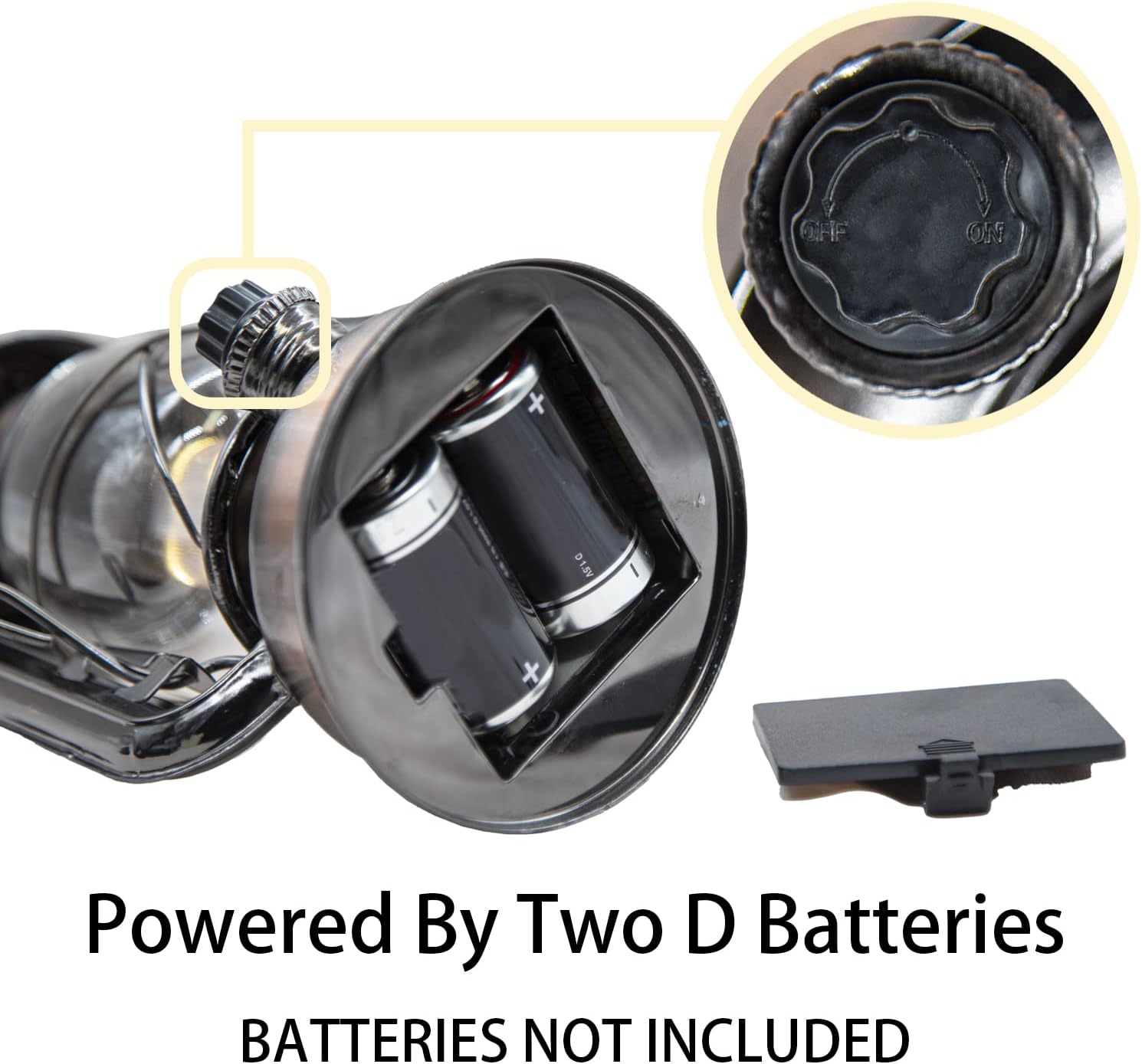 - BATTERY OPERATED: Each vintage lanterns battery powered led by 2 D batteries (not included), the battery life varies based on usage. Without wiring limited.This lantern is great useful for camping when you make your way around the campsite and your tent easily in the dark. Please note when in extreme weather conditions, the lamp should be placed indoors to prevent glass from breaking.