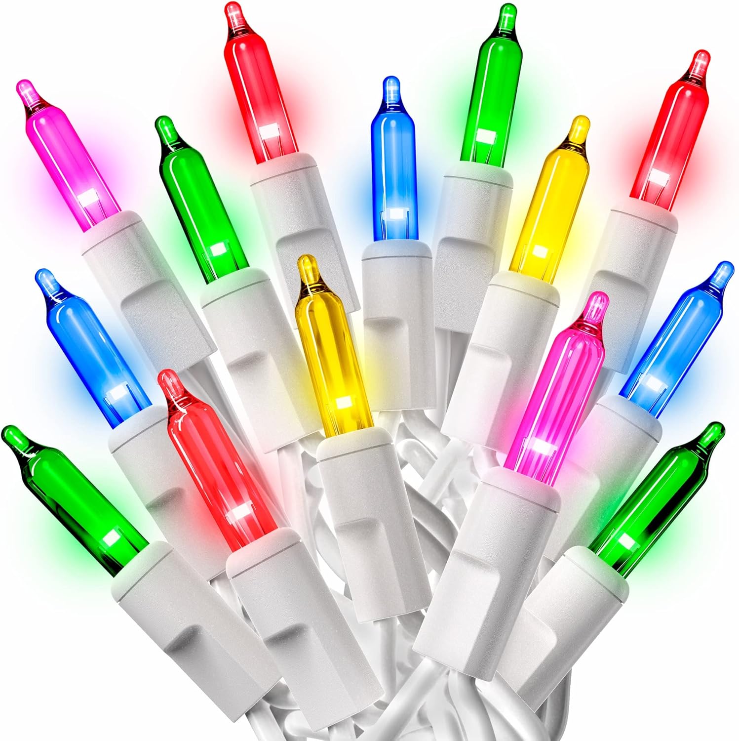 - INCLUDES: 60 Feet of 300 Multicolor Lights on White Wire, 6 Flasher Bulbs to make lights Twinkle, 4 Extra Bulbs, and 4 replacement fuses (2F/2R/1). 2pack of 150ct string lights.