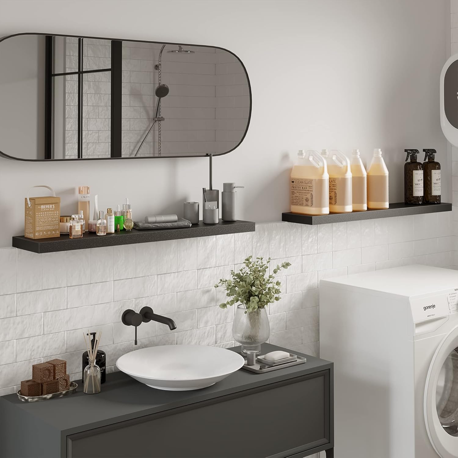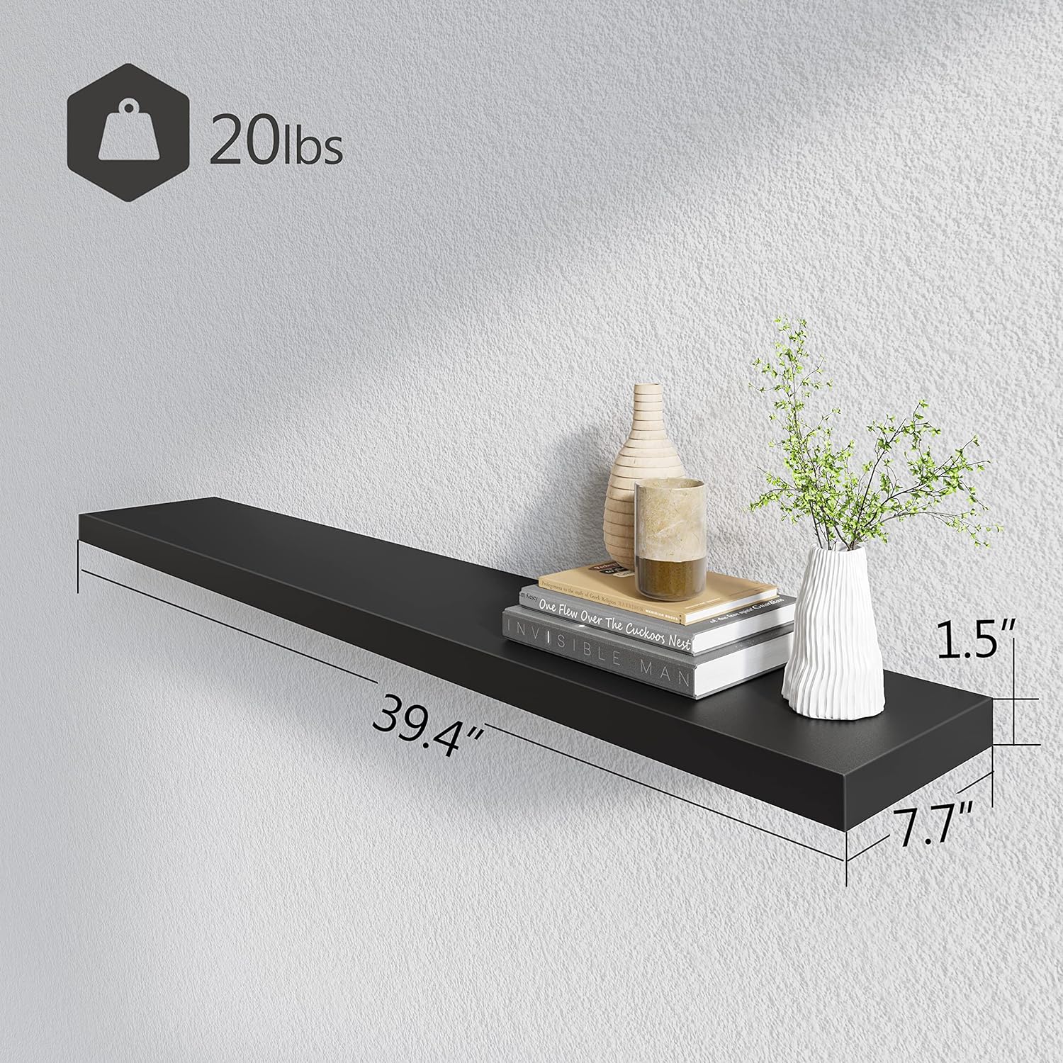 - 40 INCHES FREE UP SPACE: The Bameos Black Wall Shelf will maximize space without taking up any square feet - each board measures 39.4” L x 7.7” W x 1.5” H; Reduce clutter and highlight decor in a compact space - giving the illusion of more space in your studio apartment, dorm room or small living area and so on