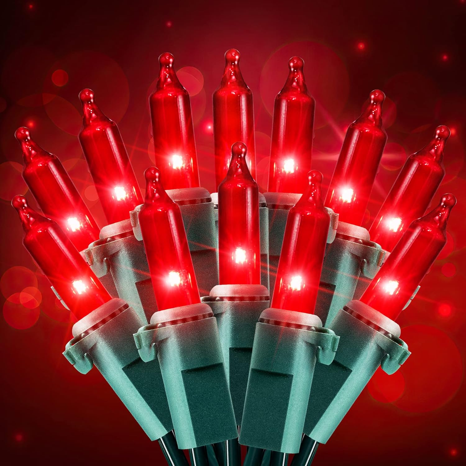 - 💕50 Vibrant Lights with Perfect After Sale :Old-fashion red incandescent Christmas light set, creates a warm and festive atmosphere, surely lights up your house, let your home become a fantastic sight to behold in your neighborhood! With green wire, ideal for a tree, bedroom, patio decorations!If you have any reason you don't enjoy it, just send us a message and we will refund 100% or replace your purchase.