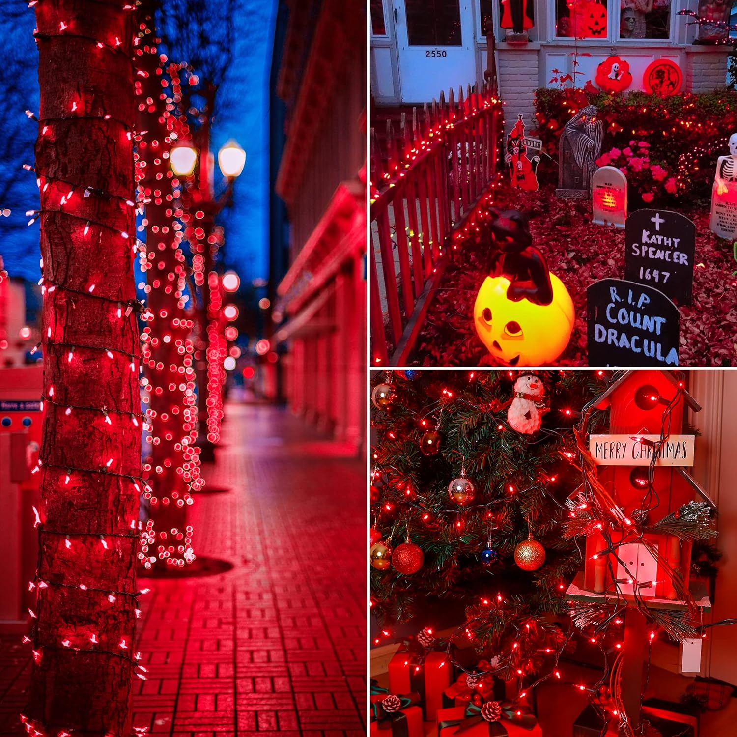 Christmas Lights Indoor Outdoor, 2PACK 13FT 50-count Lights Incandescent Mini Halloween String Light, 120V UL Certified Green Wire Light for Xmas Tree, Patio, Holiday, Party, Home, Garden Decor,Red