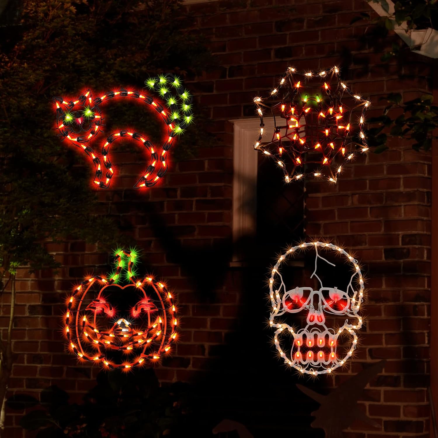 - Wide Applications: you can display the Cobweb, Jack-O-lantern,Cat and Skull window lights on window, wall, tree, fence or any other place indoor outdoor you want to decorate with good waterproof performance, ideal choices for haunted houses, Halloween party, theme party, Halloween scene and so on.