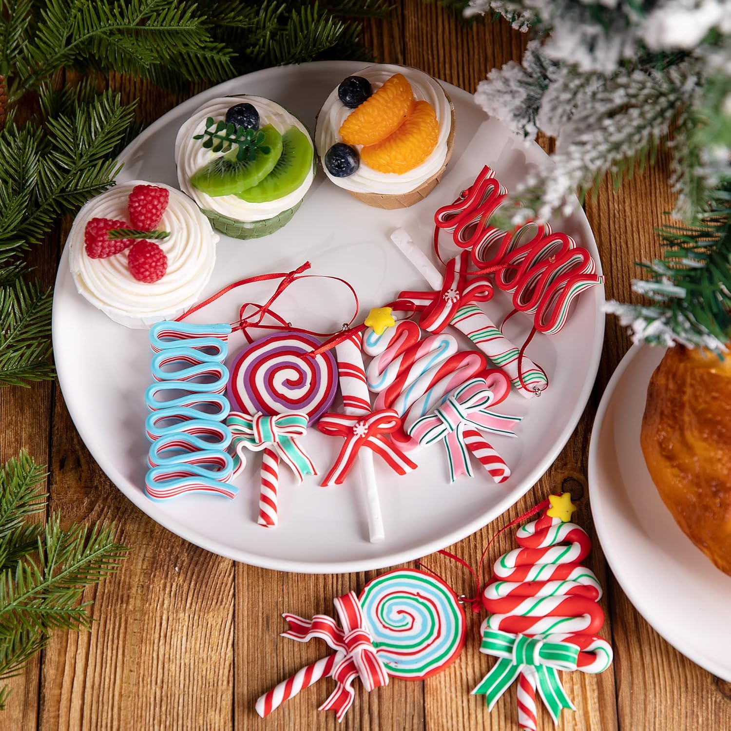 - Easy to use: Every Christmas lollipop polymer clay ornament is equipped with a red ribbon, light weight, you can easily hang them where you want to decorate. Bring you a different visual experience.
