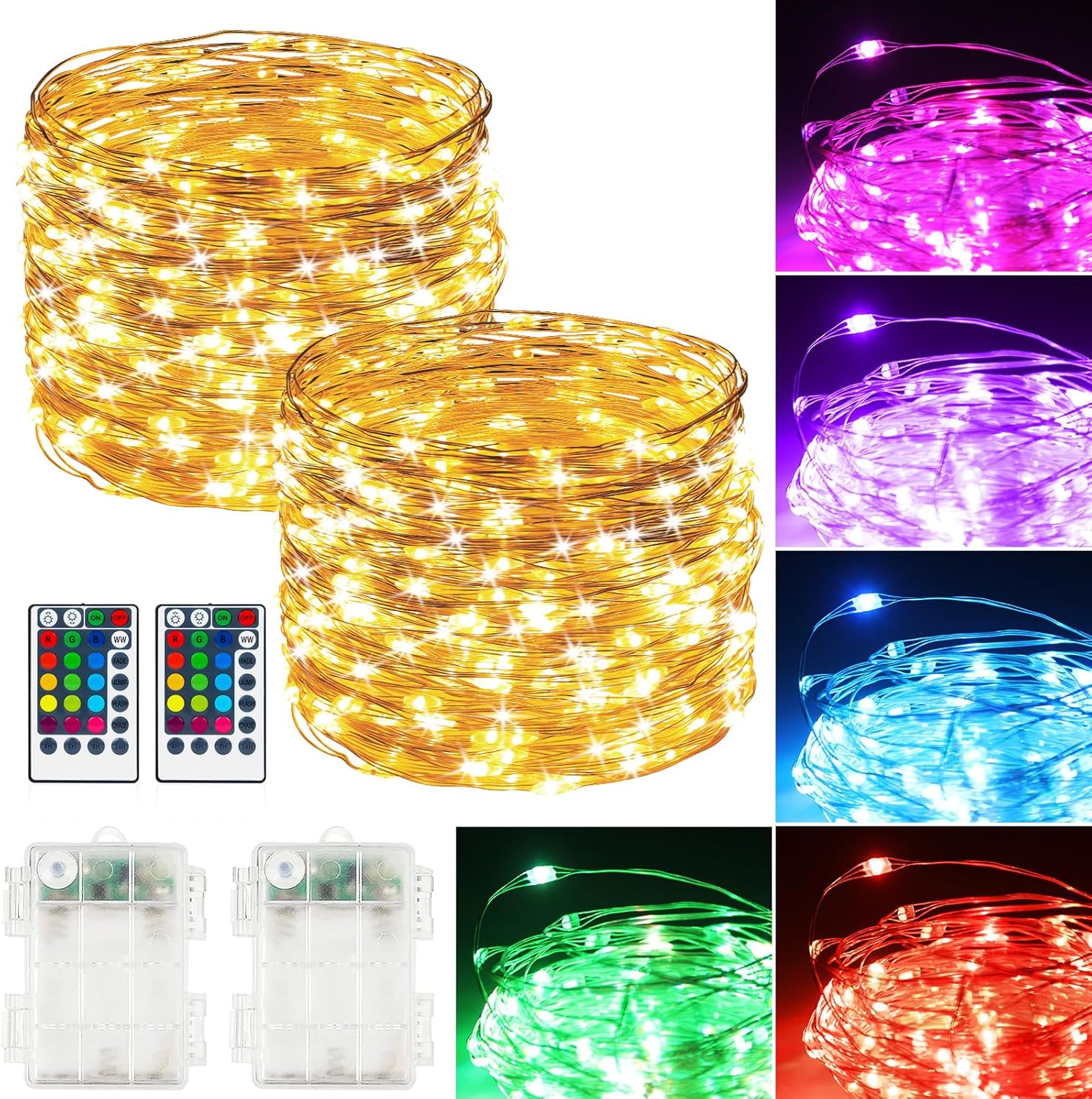 2Pack Battery Fairy Lights, Total 78Ft 240LED, Battery Operated Fairy Lights with Remote and Timer, RGB Color Changing String Lights/Twinkle Lights for Bedroom Indoor Christmas Decoration