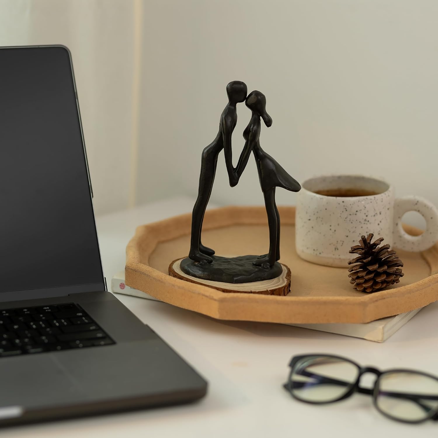 Sziqiqi Couple Sculptures Cast Iron Gift for Anniversaries Wedding Small Modern Abstract Figurine Decorative Metal Statues Romantic Passionate Love Ornament for Couples Valentines
