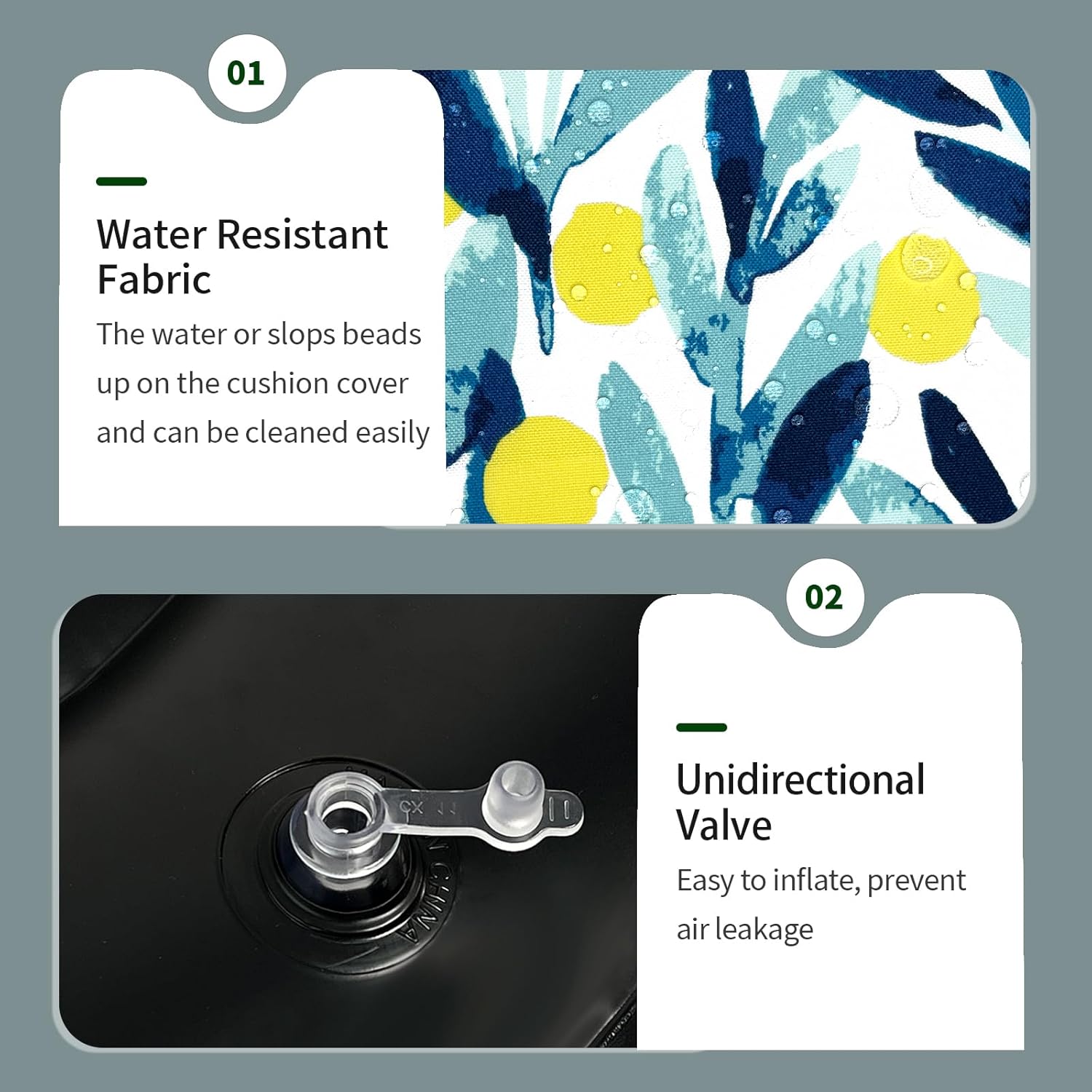 Inflatable Ottoman Stool D21 xH9 for Outdoor/Indoor Use, Water Repellent Patio Foot Rest Stool with Portable Handle,Round Pouf Ottoman Suitable for Garden,Deck and Camping - Leaves Multi
