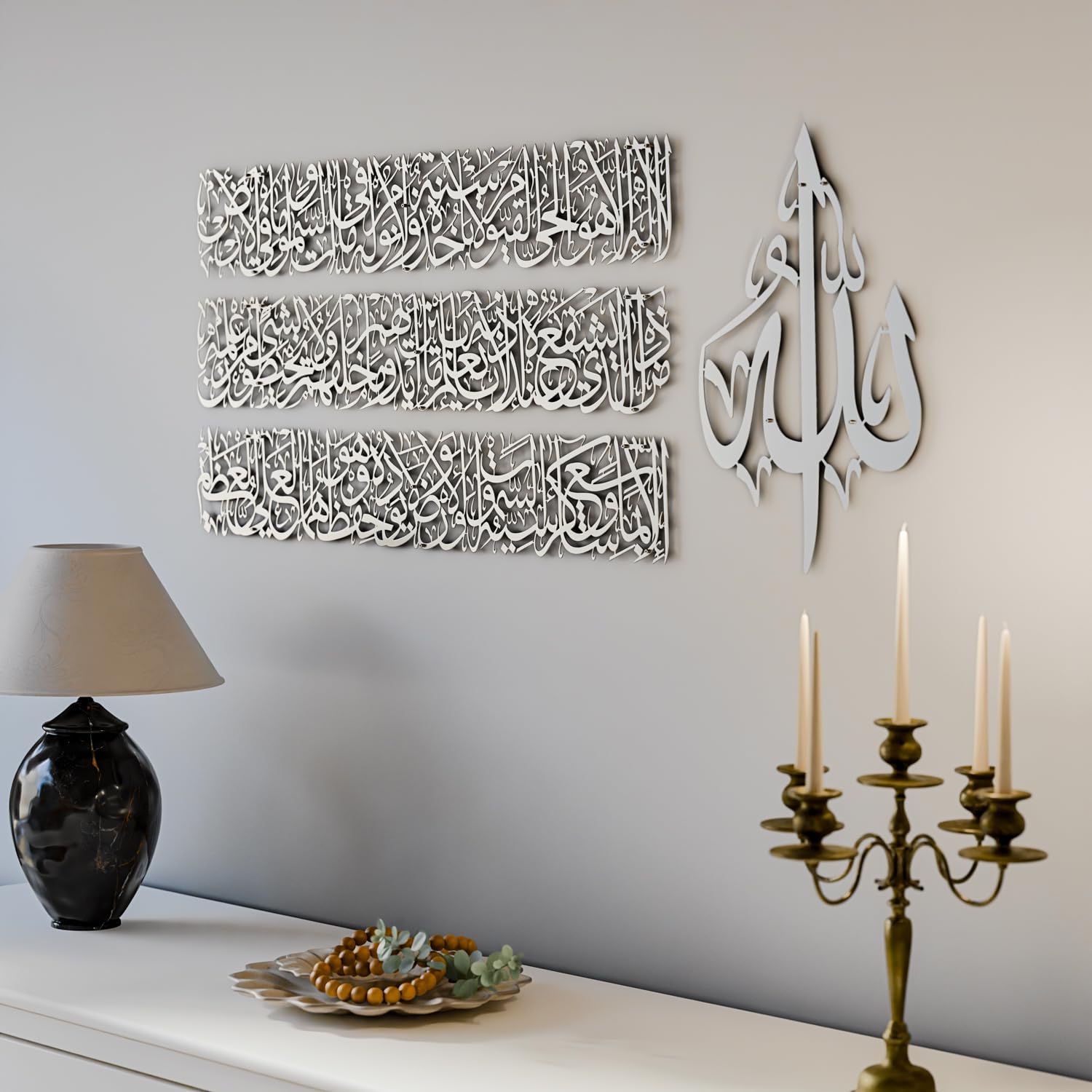 Modern Islamic Wall Art, Ayatul Kursi Metal Artwork, Perfect for Ramadan Decorations, Muslim Housewarming Gifts, Arabic Calligraphy Throne Verse Wall Decor, Ideal Eid Decor (Medium, Matte Silver)