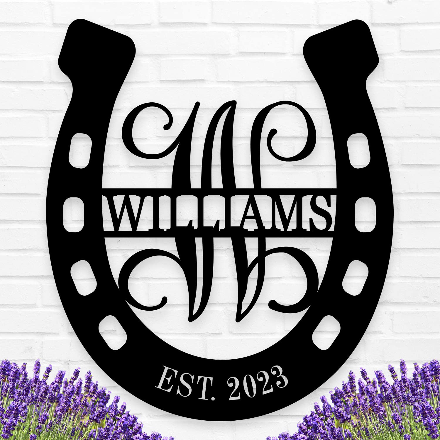 Personalized Horseshoe Metal Sign with Initial and Family Name, Custom Monogram Horseshoe Metal Sign, Horseshoe Metal Wall Art Last Name Sign Equestrian Horse Lover Gift Horseshoe Living Room Decor