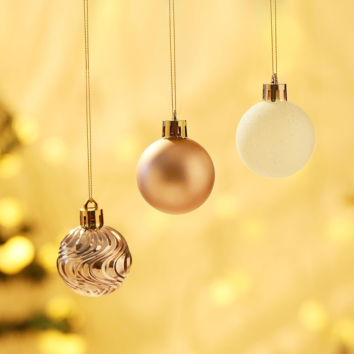 - Comprehensive Ornament Selection: Enhance your holiday display with our luxurious 50-piece Christmas ball ornaments set, featuring a combination of 5 distinct styles in 3 different sizes to create an elegant, harmonious tree ensemble.