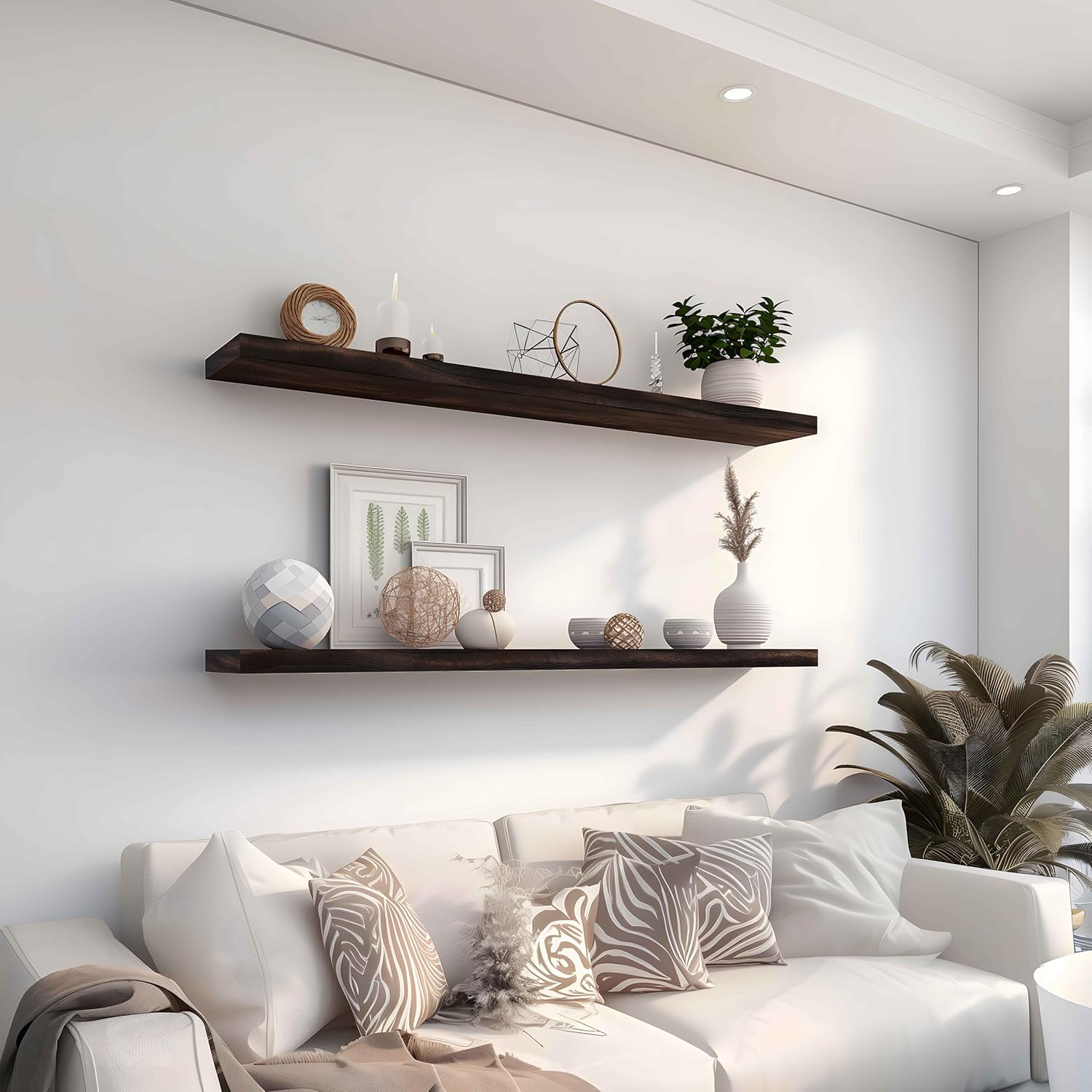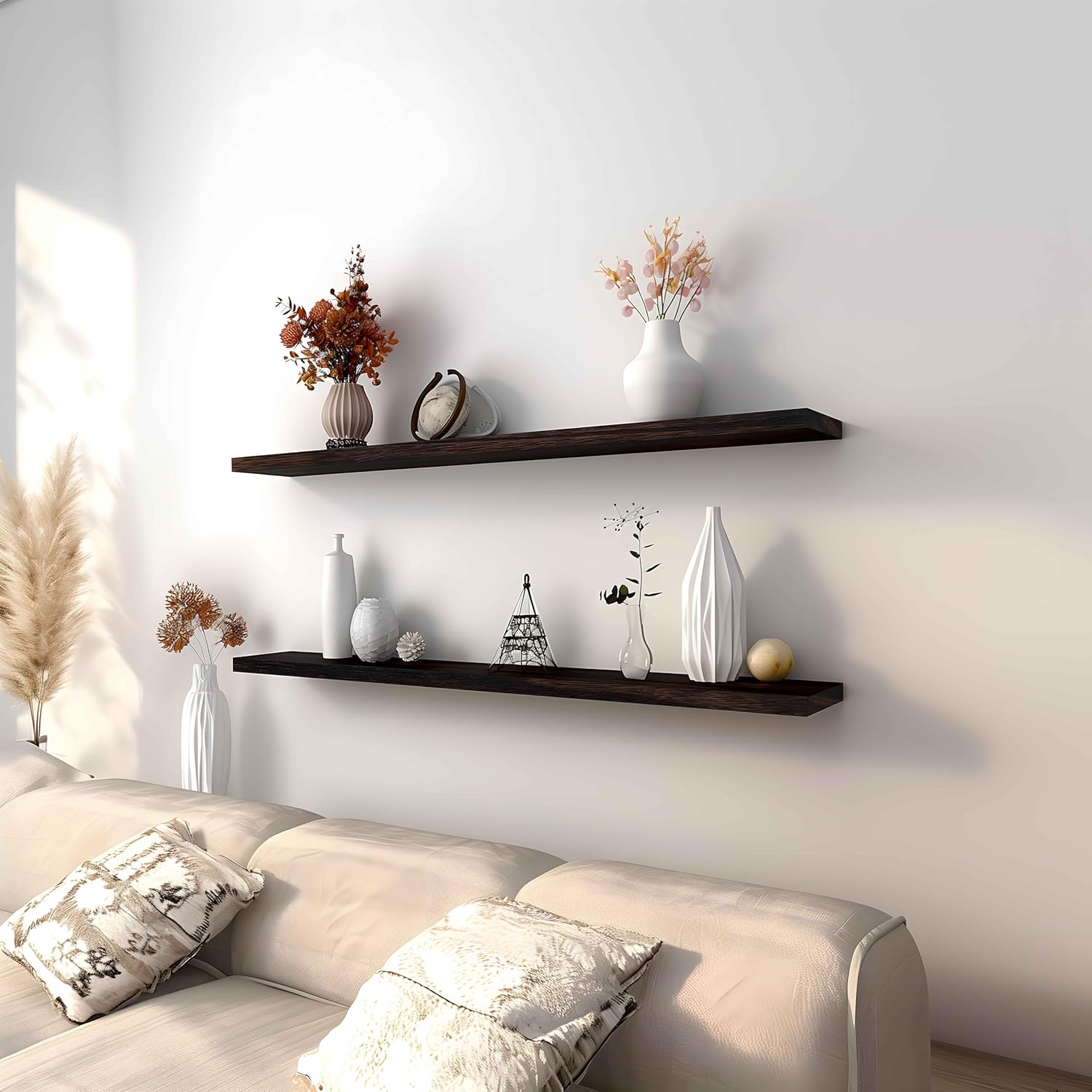Wood Floating Shelves for Wall Decor, Rustic Wall Shelves for Bedroom Bathroom Kitchen Living Room, Set of 4 Walnut 48 Inch