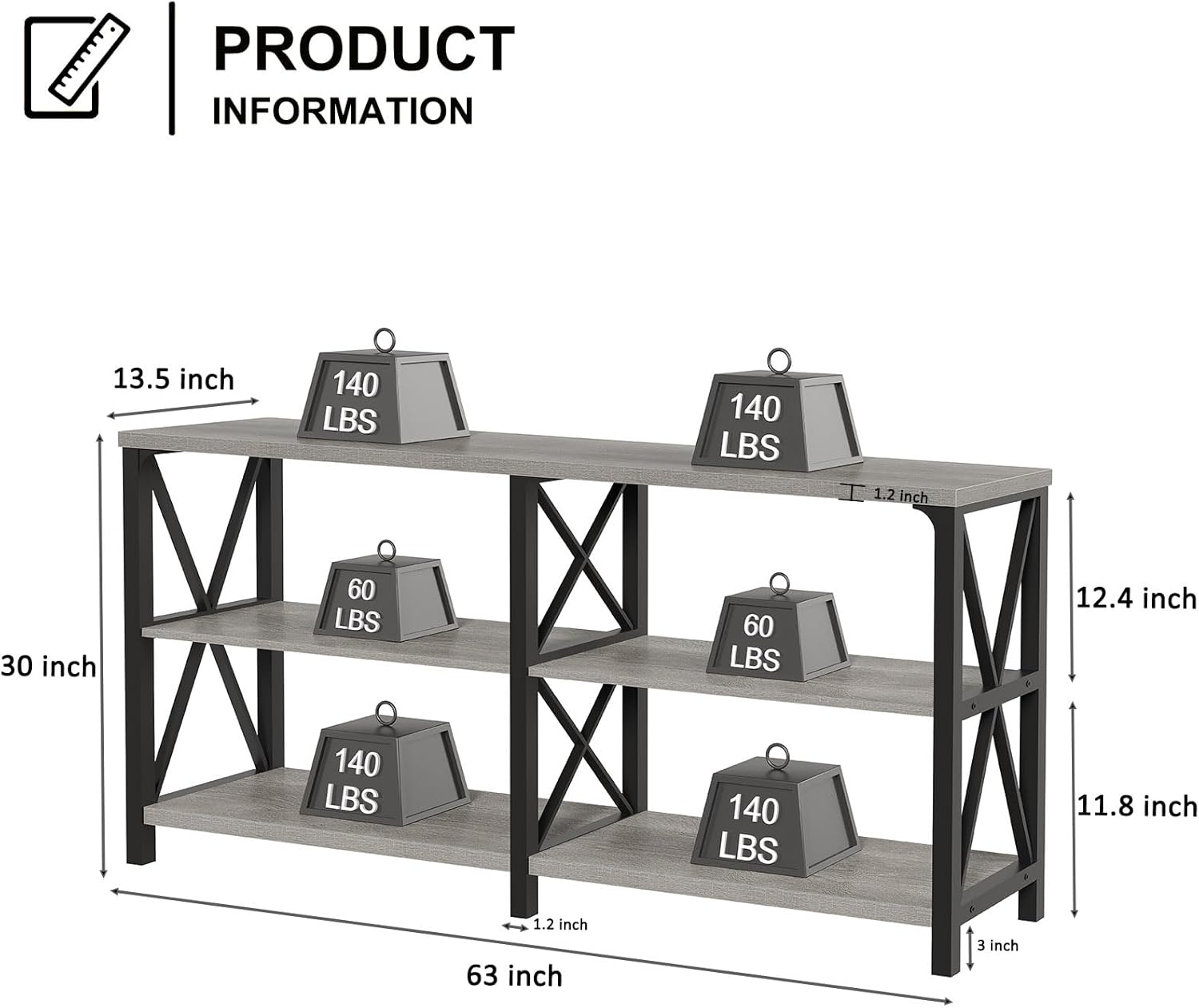 LVB Industrial Entryway Table, Farmhouse Rustic Console Table Behind Couch, Long Metal Wooden Sofa Table with Storage Shelf, Modern Foyer Hallway for Living Room Bedroom, Light Grey Oak, 63 in