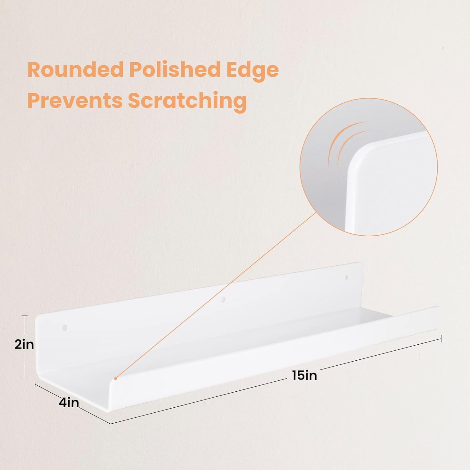 upsimples Acrylic Shelves for Wall Decor, 15" Display Shelf Perfume Organizer for Bathroom, Bedroom, Living Room, Floating Bookshelves for Kids, White, 2 Pack