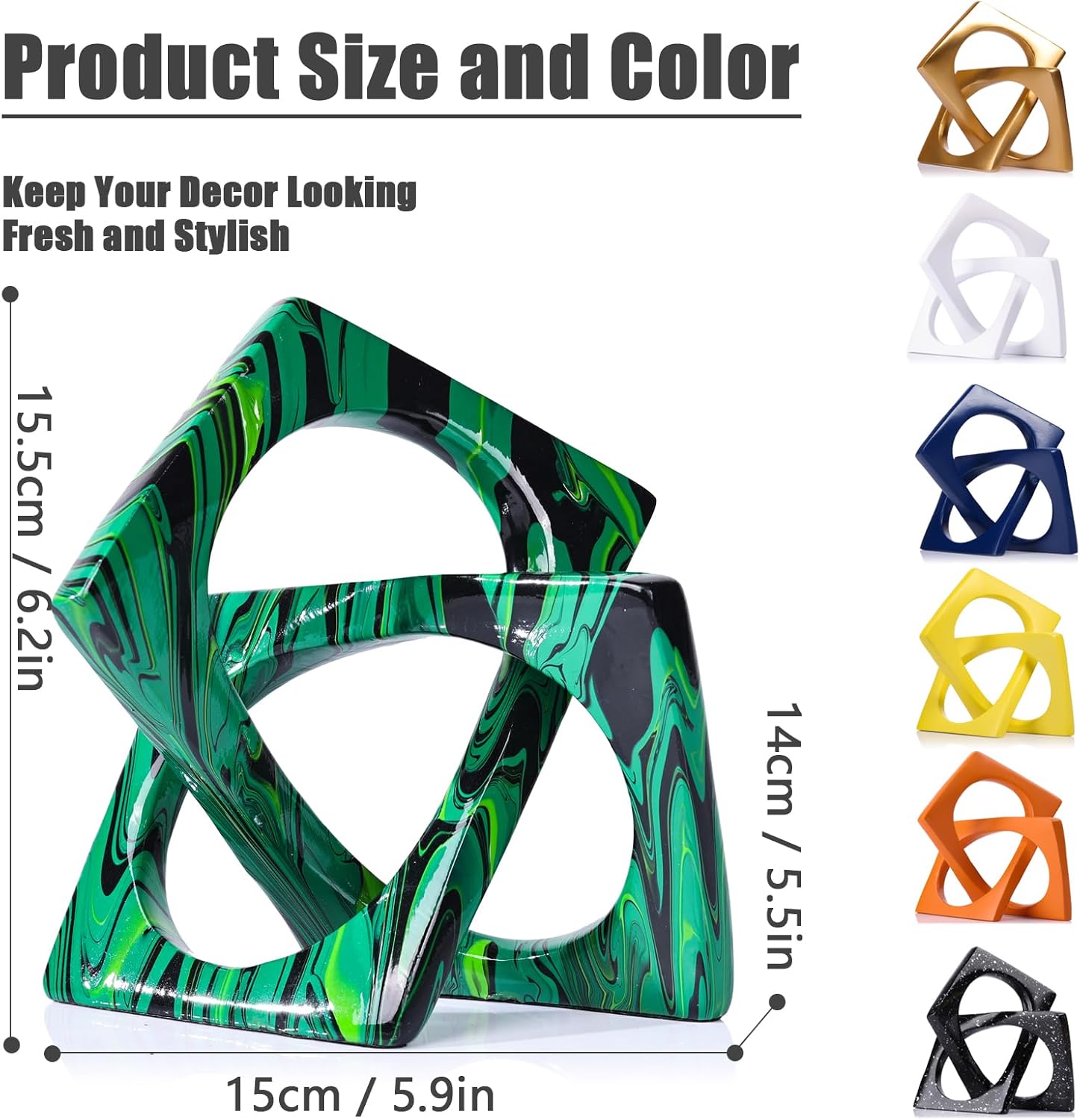 - 【Statue material】Emerald Green Geometric Statue Made of high quality resin material,The biggest advantage of resin is that it is wear-resistant,long-lasting, and has good self-cleaning properties. Simply wipe the dust off the statue with a rag at your leisure, and the statue will be back to its latest state,Very convenient