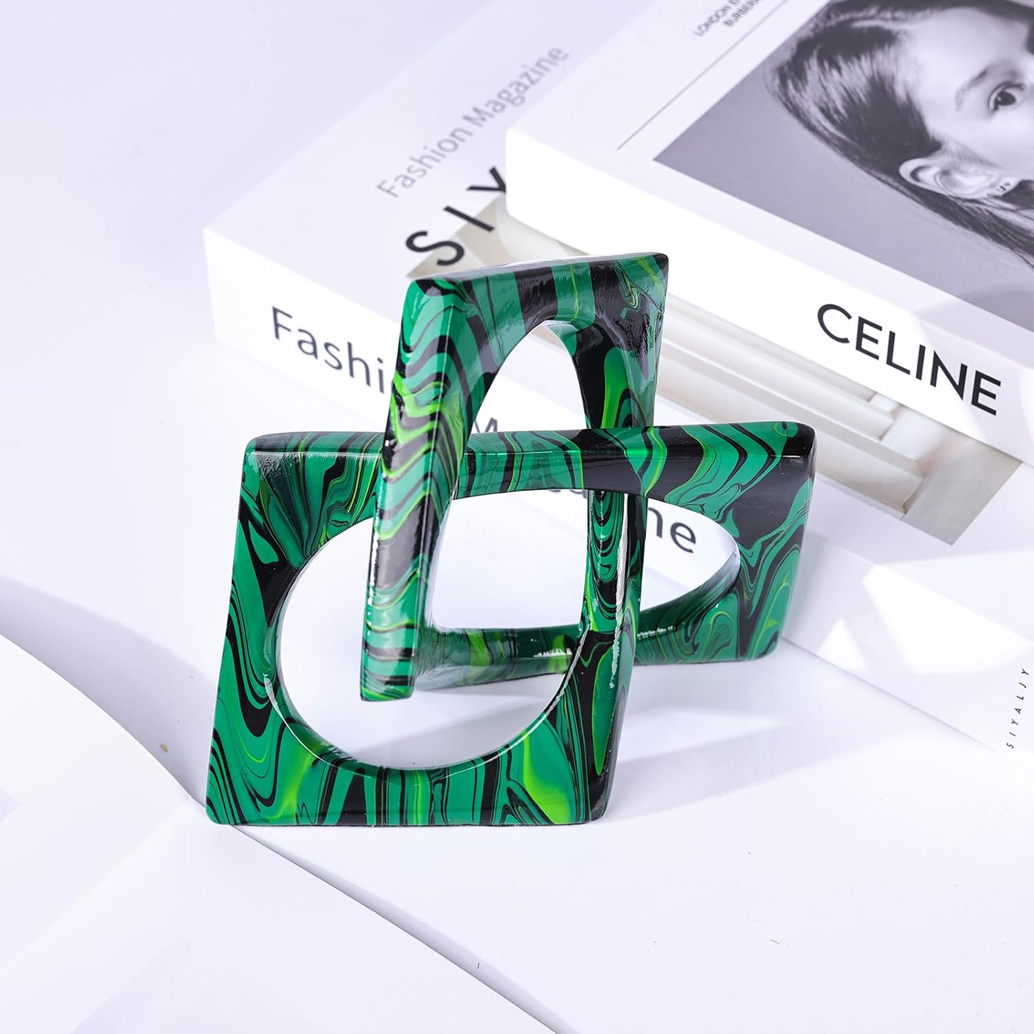 - 【Emerald Green Geometric Sculpture】Design inspired by the "Möbius strip, topological and geometric model" . It is an abstract ornament full of artistic creativity, Ideal for hotels, bars, etc Home Decor ; Scandinavian style interior filler