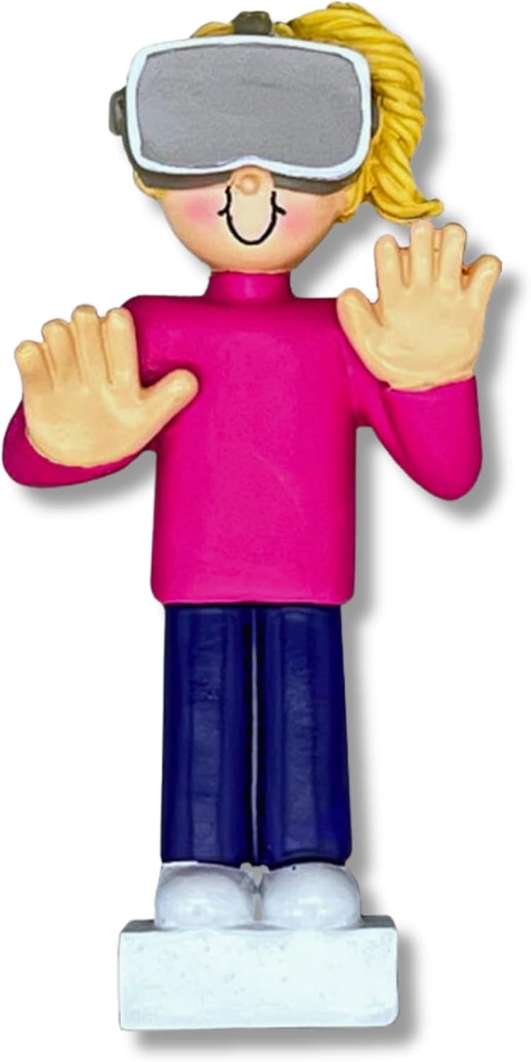 - DECORATIONS: Make your Christmas or special occasions more immersive with the Virtual Reality Female Blonde ornament. It adds a touch of technology to your decor.