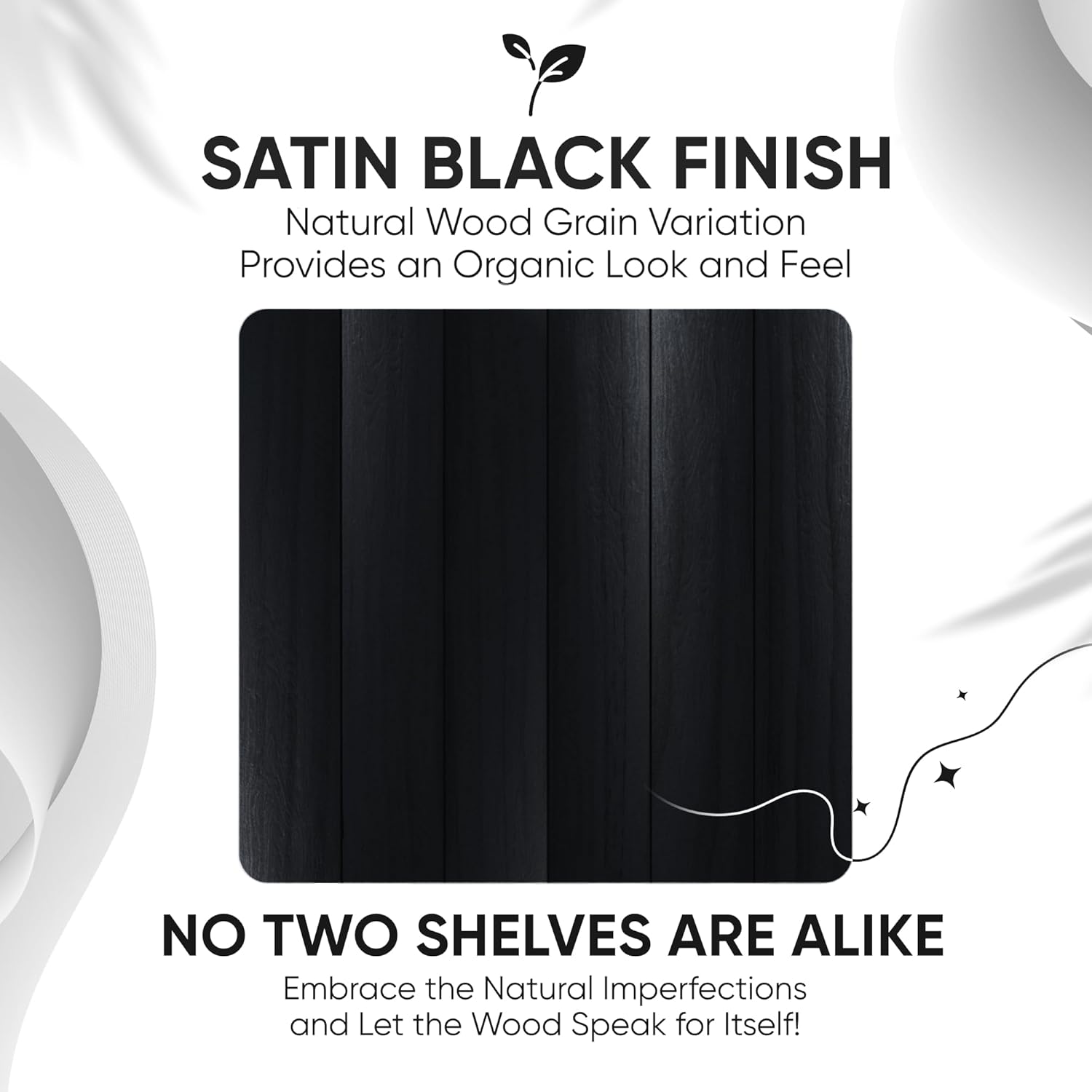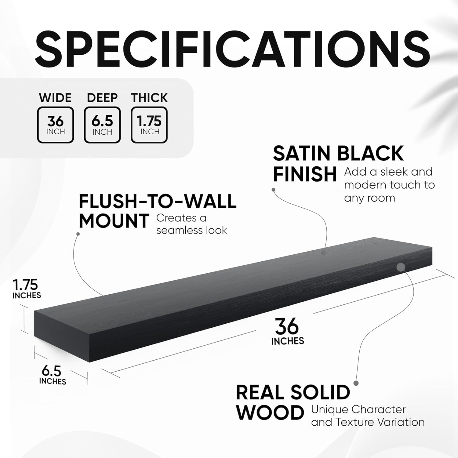 Homeforia Black Floating Shelves 36 inches Long, High End Solid Real Wood 36 inch Floating Shelf for Wall Mounted, Black Wooden 36in Floating Shelves, Heavy Duty Bracket, 36 X 6.5 X 1.75 in, Set of 2