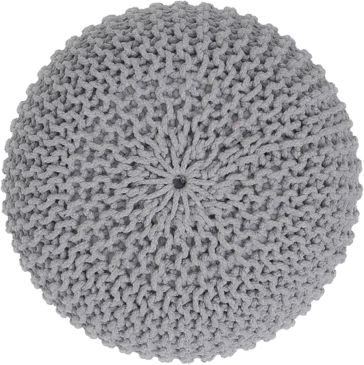 REDEARTH Round Boho Pouf Ottoman - Cable Knitted Cord Boho Pouffe - Stuffed Poof Accent Beanbag Footrest for Living Room - Nursery - Bedroom - Covered Patio - Study Nook (18”x18”x14”) - Gray-S