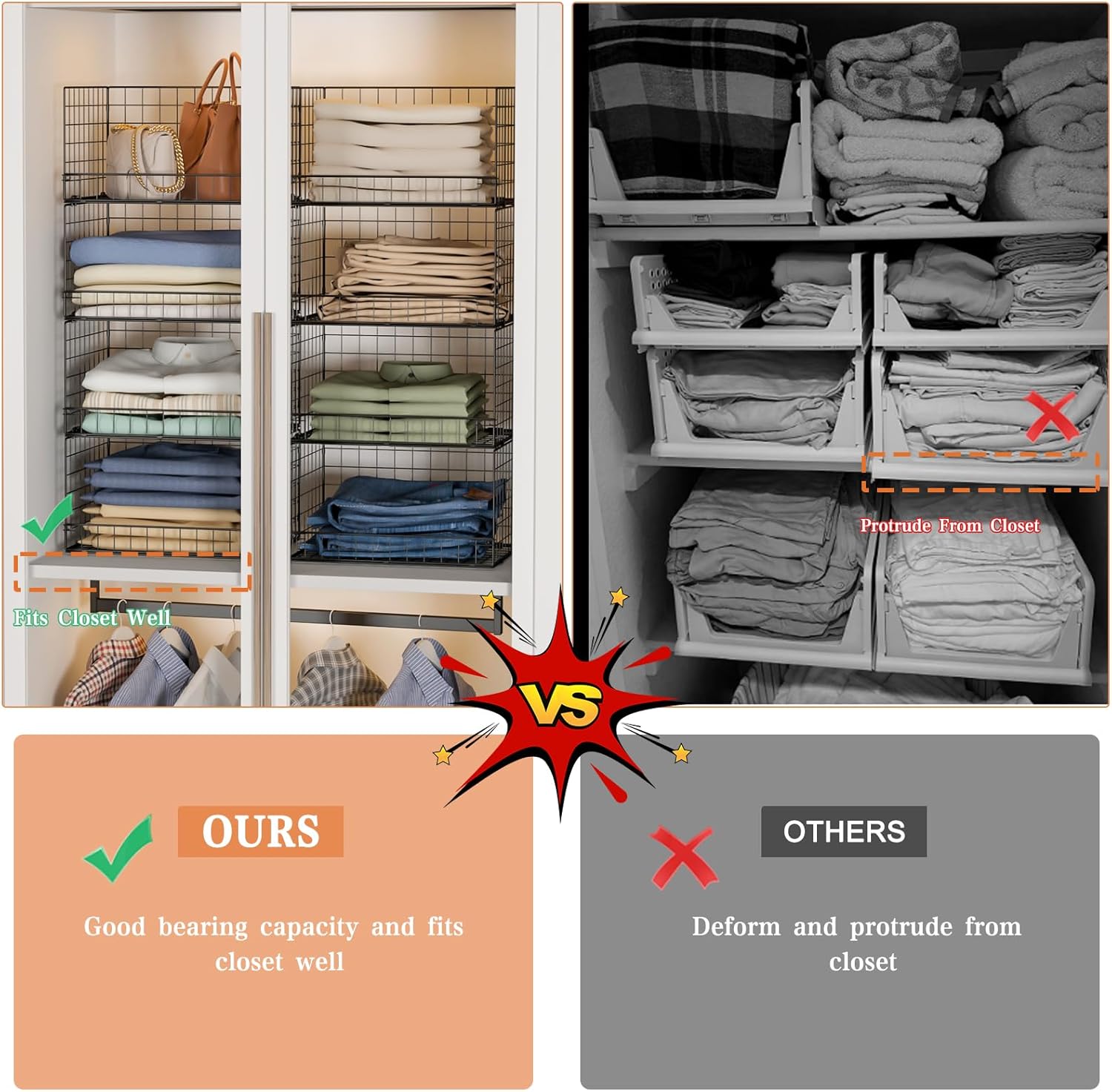 4-Tier Stackable Closet Organizers and Storage Shelves, Clothes Shelf Organizer Basket Bins, Foldable Sweater Storage for Closet Organizer System, Black (Patent Pending)