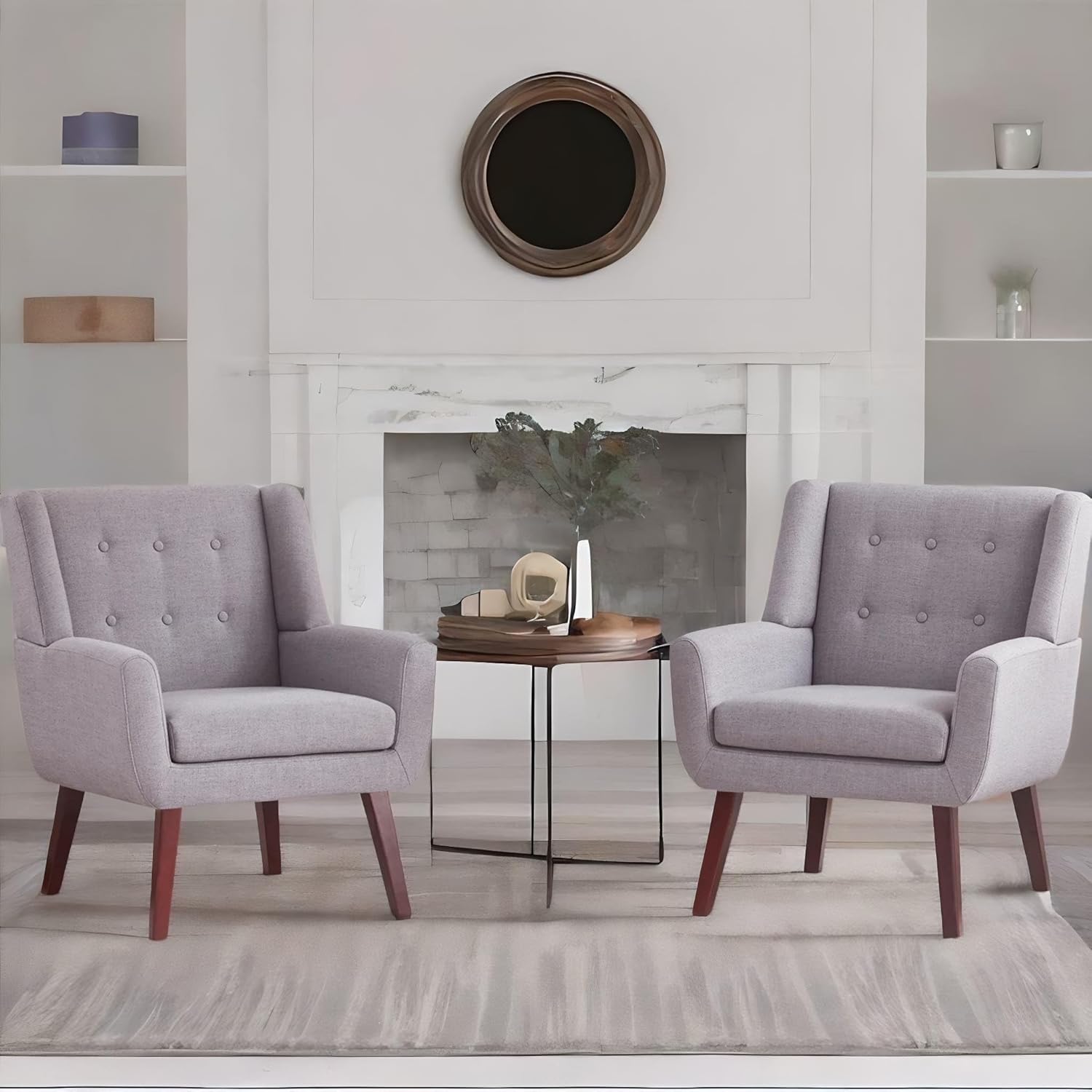 HUIMO Button-Tufted Accent Chairs Set of 2,Upholstered Reading Living Room Chair,Mid Century Modern Chair with Linen Fabric, Club Chair,Comfy Arm Chairs for Living Room,Bedroom,Light Grey