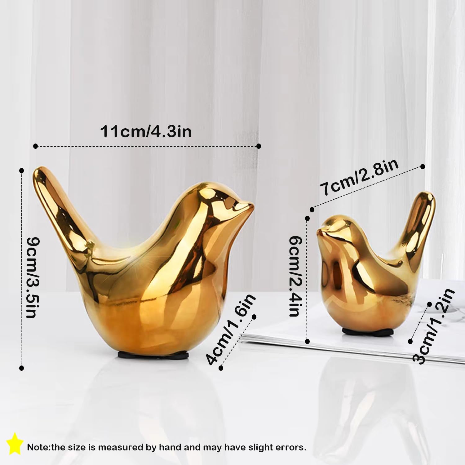 Small Animal Statues, Gold Bird Figurines Home Decor, Modern Home Decorative, Ceramic Decor for Office Desktop, Bookshelf, Bedroom, Living Room, Cabinets (Gold 2 Pcs)