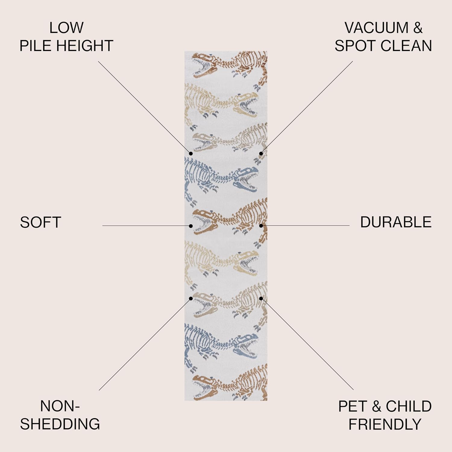 JONATHAN Y Machine-Washable Cream/Multi Runner Rug, 2x8, Kingdarr T-Rex Modern, Casual, Kids & Novelty for Living Room, Dining Room, Bedroom, Kitchen Easy-Cleaning, Non-Shedding (KDW103A-28)