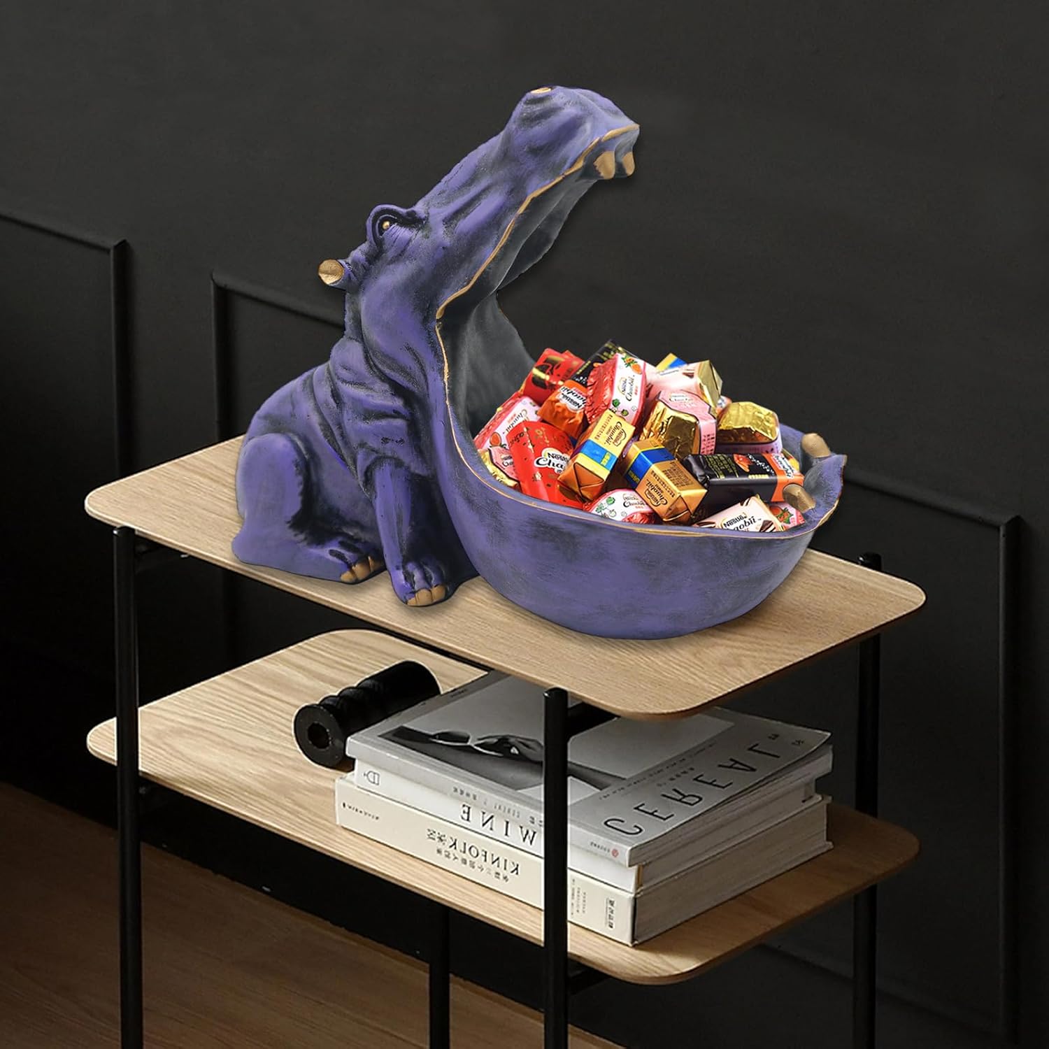 aboxoo Hippo Statue Home Resin Hippopotamus Figurine Fun Candy Dish,Key Bowl,Big Mouth Sculpture Table Art Decoration Sundries Container Storage Box (Purple)