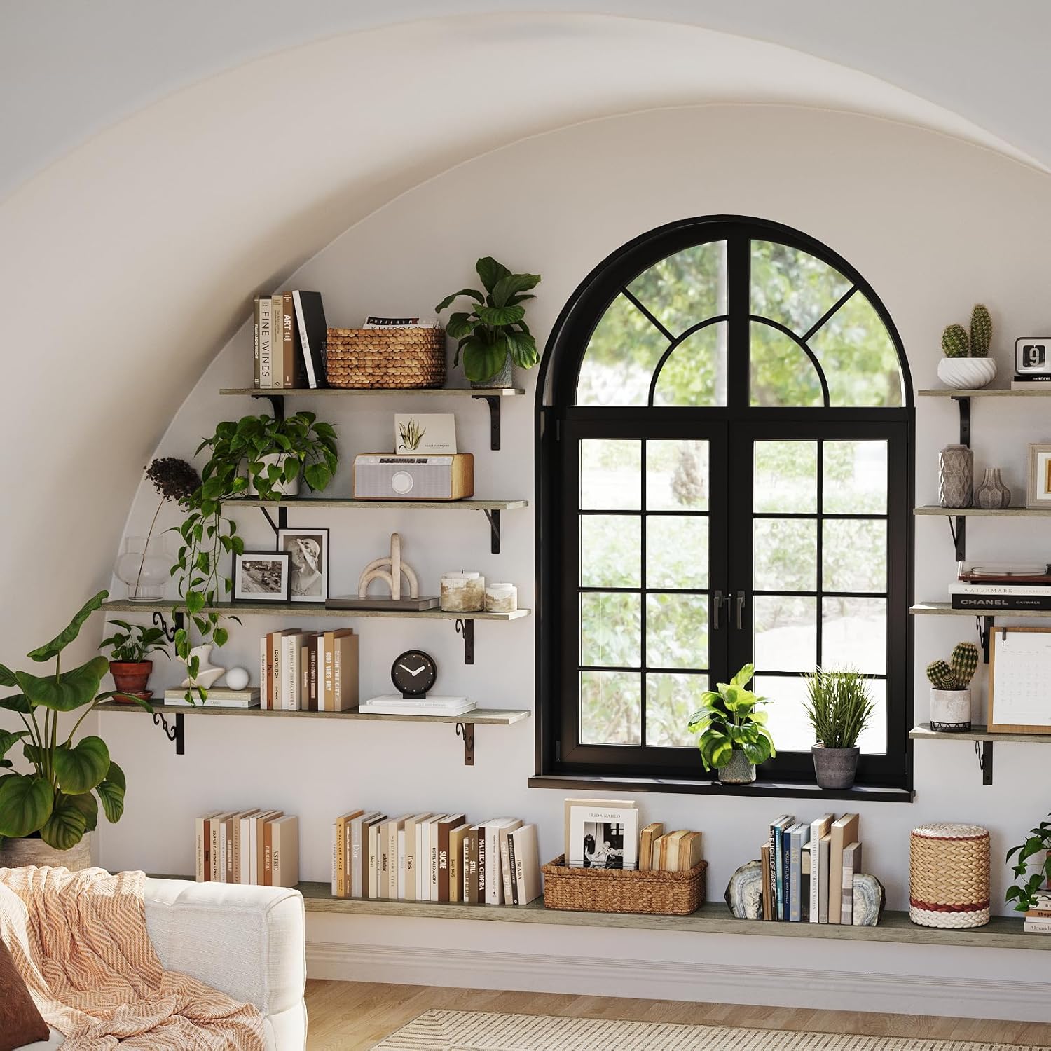 - ăAge with Grace in Any SettingăTurn your any wall into a real eye-catcher space with these large wall shelving. Long and wide enough for plates, glasses, books, legos, collection or towels etc. Make a statement in entryway, bathroom, balcony, study, kitchen, laundry, bar area, pantry