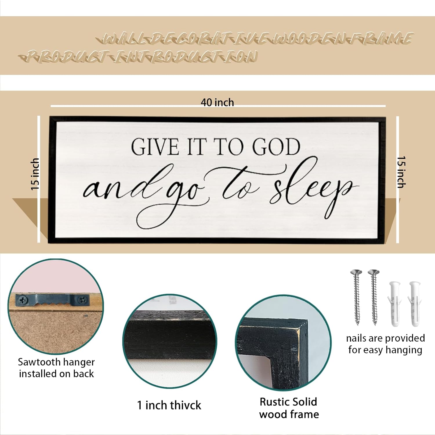 comurdyo Give It To God And Go to Sleep Sign 40''×15'' Master Bedroom Above Bed Wall Decor Wood Framed Couple Large Farmhouse Guest Room Rustic Simple Over Bedside Wall Art Hanging Decor (Black)