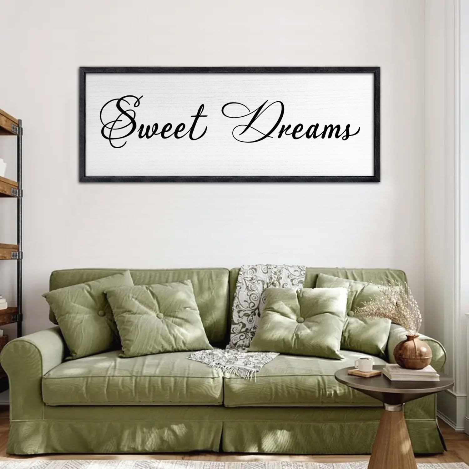 Sweet Dreams Wall Decor Above Bed 40x15 Inch Large Master Bedroom Hanging Wood Rustic Framed Farmhouse Sweet Dreams Sign Guest Room Aesthetic And Minimalist Over Bed Wall Art(Black)
