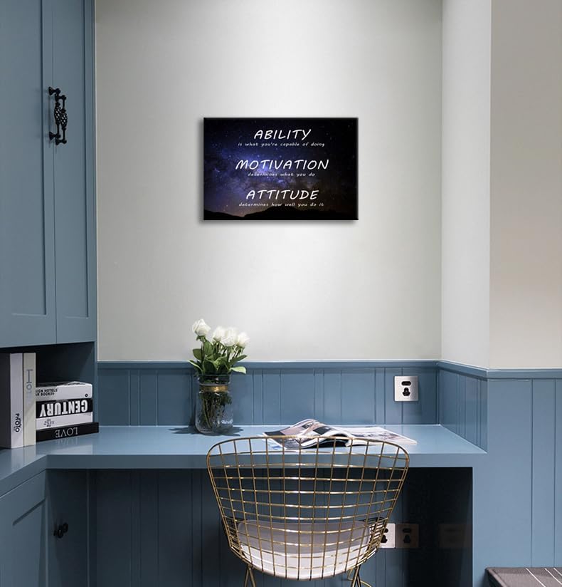 Inspirational Canvas Wall Art Painting Ability Motivation Attitude Success Poster Positive Motivational Artwork Prints Picture Bedroom Office Shcool Wall Decor Framed Ready to Hang [12''Wx 18''H]