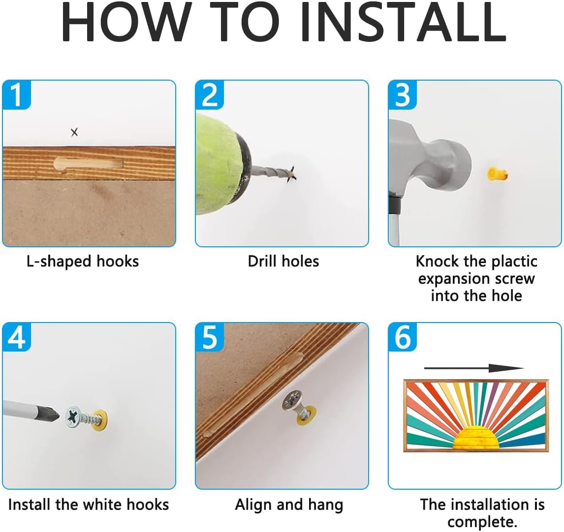 - 【Size for Easy Displaying】The boho sun artwork wall decor boho sunshine wall art is about 16 × 32 inches. Two holes are pre-installed on the back of high-quality natural wood artworks, so you can easily hang them with the nails provided in the package, which is very easy to operate.